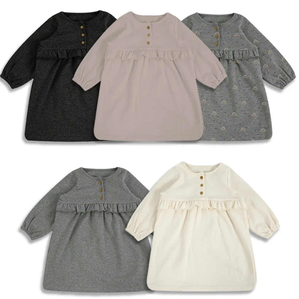 Детская одежда, Осеннее Повседневное платье для маленьких девочек, детская Милая Прямая поставка, одежда для маленьких девочек с длинным рукавом