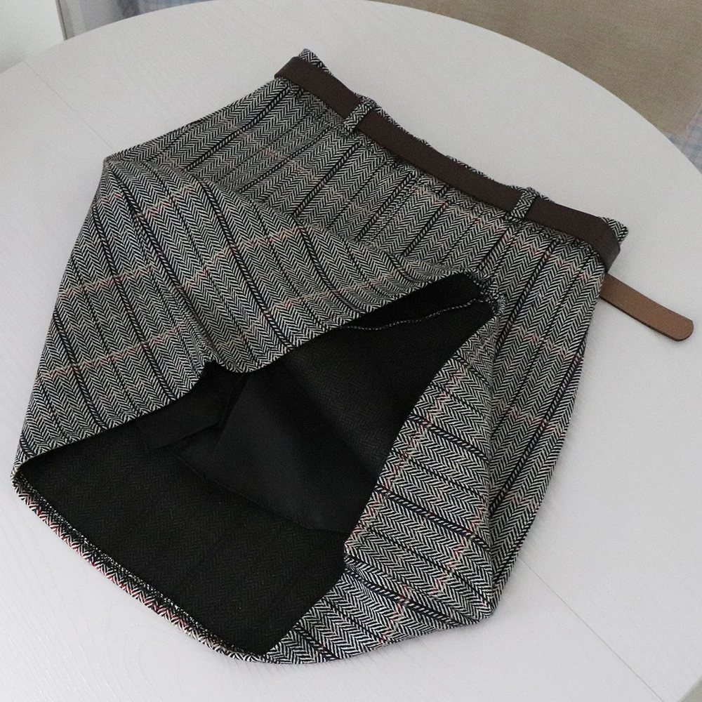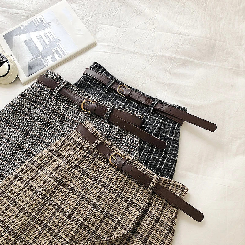 Повседневная клетчатая трапециевидная Женская юбка с поясом, винтаж...