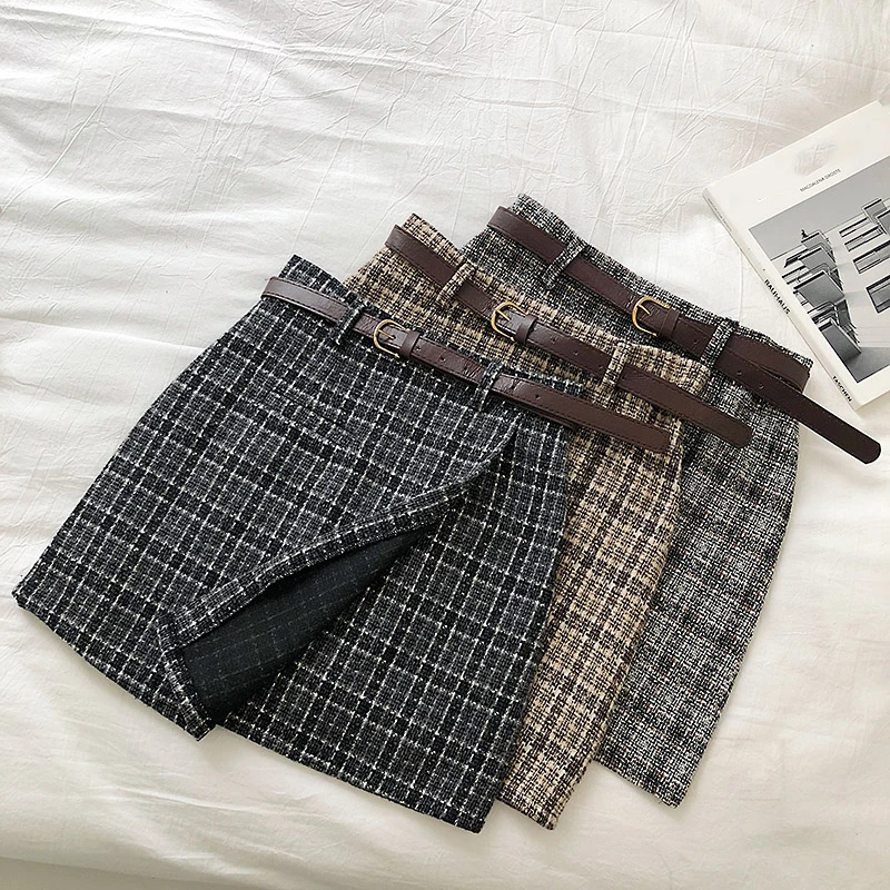 Женская клетчатая мини-юбка с завышенной талией, трапециевидная винтажная юбка в Корейском стиле, Y2k, зима 2022