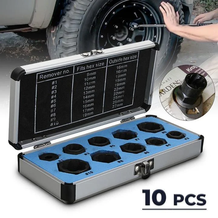 10 шт., набор инструментов для удаления поврежденных гаек и болтов, 9-19 мм