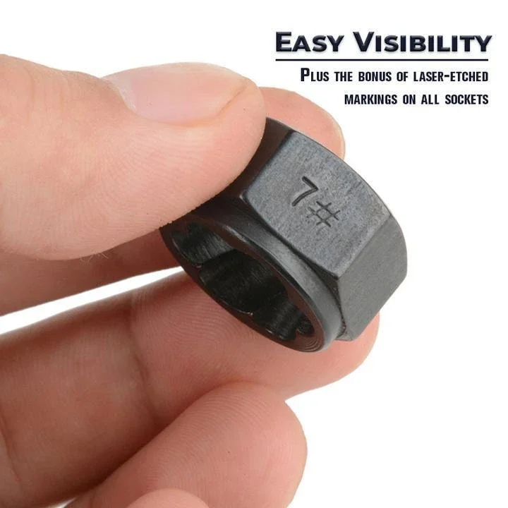 * Высокое качество ограничения:От удара Номинальная 6-точечный Высокоуглеродистая сталь (Хромомолибденовая сталь), которая обеспечивает превосходную прочность, устойчивость к коррозии и максимальный захват мощности. Плюс бонус лазерной гравировки на всех гнездах для легкой видимости.