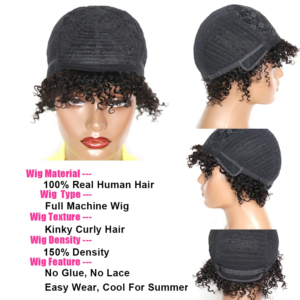 Hair Material:8A Grade Remy Human Hair wig with bangs