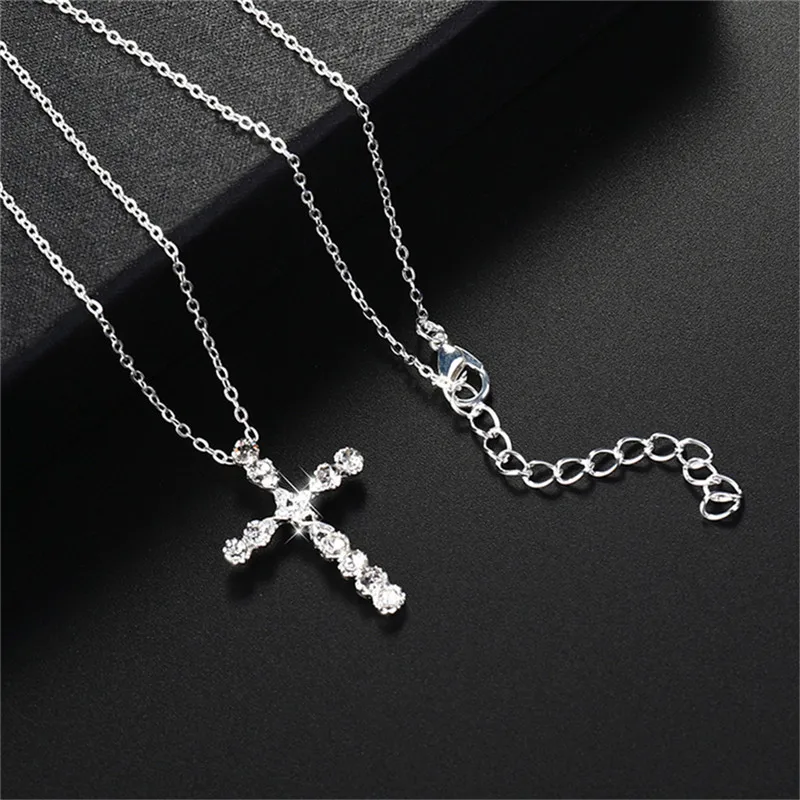 Модные женские подвески в виде креста, Прямая поставка, серебряный цвет, хрустальный крест, кулон, ожерелье, ювелирные изделия для мужчинженщин, оптовая продажа
