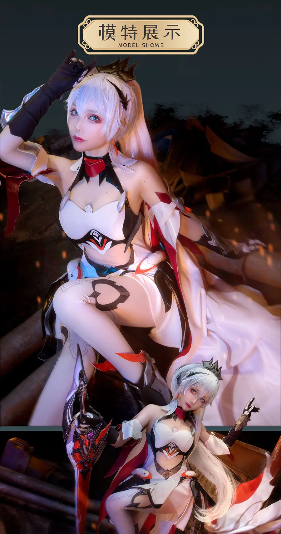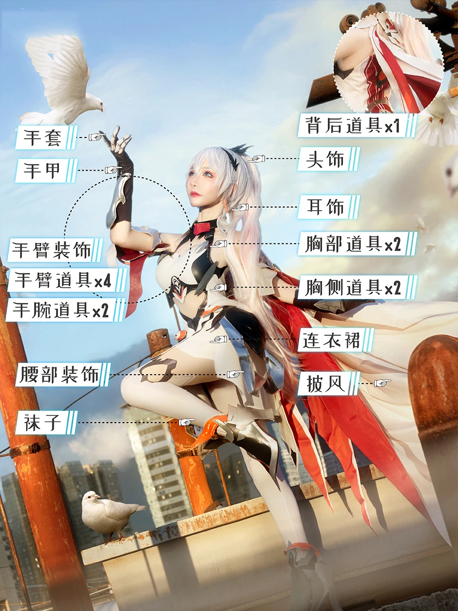 Включает в себя:Перчатки + shuko + аксессуары для рук + опора для рук * 4 + опора для запястья * 2 + украшение на талию + чулки + опора для спины * 1 + головной убор + серьги + опора для груди * 2 + боковой опора для груди * 2 + платье + плащ