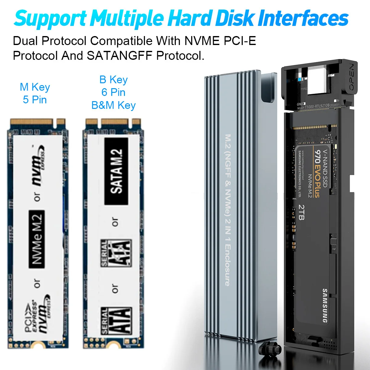 3. Поддержка протокола SATA NVME, подходит для SSD M2 (B + M Key/M Key).