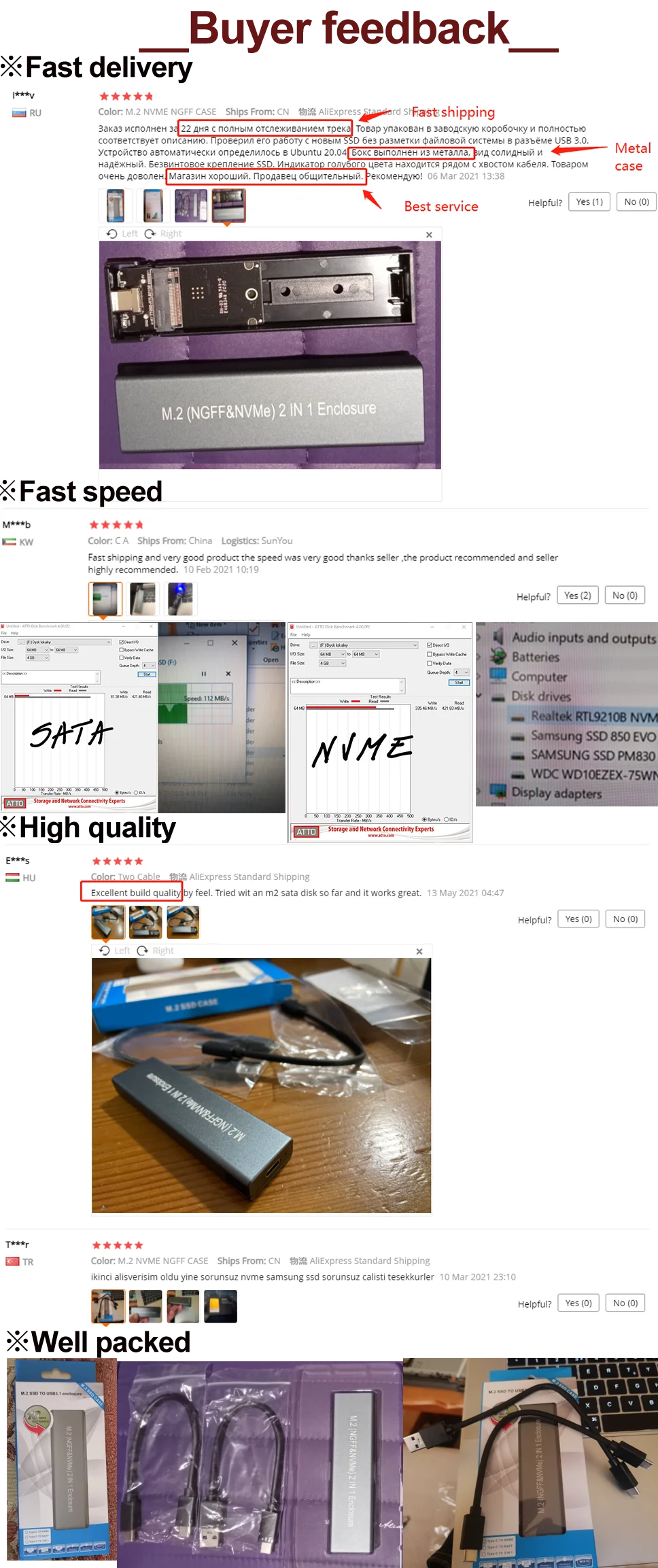 Примечание: Этот чехол не поддерживает считывание 2 шт. m.2 ssd одновременно. Можно только прочитать 1 SSD, не поддерживает RAID. Пожалуйста, проверьте перед заказом!