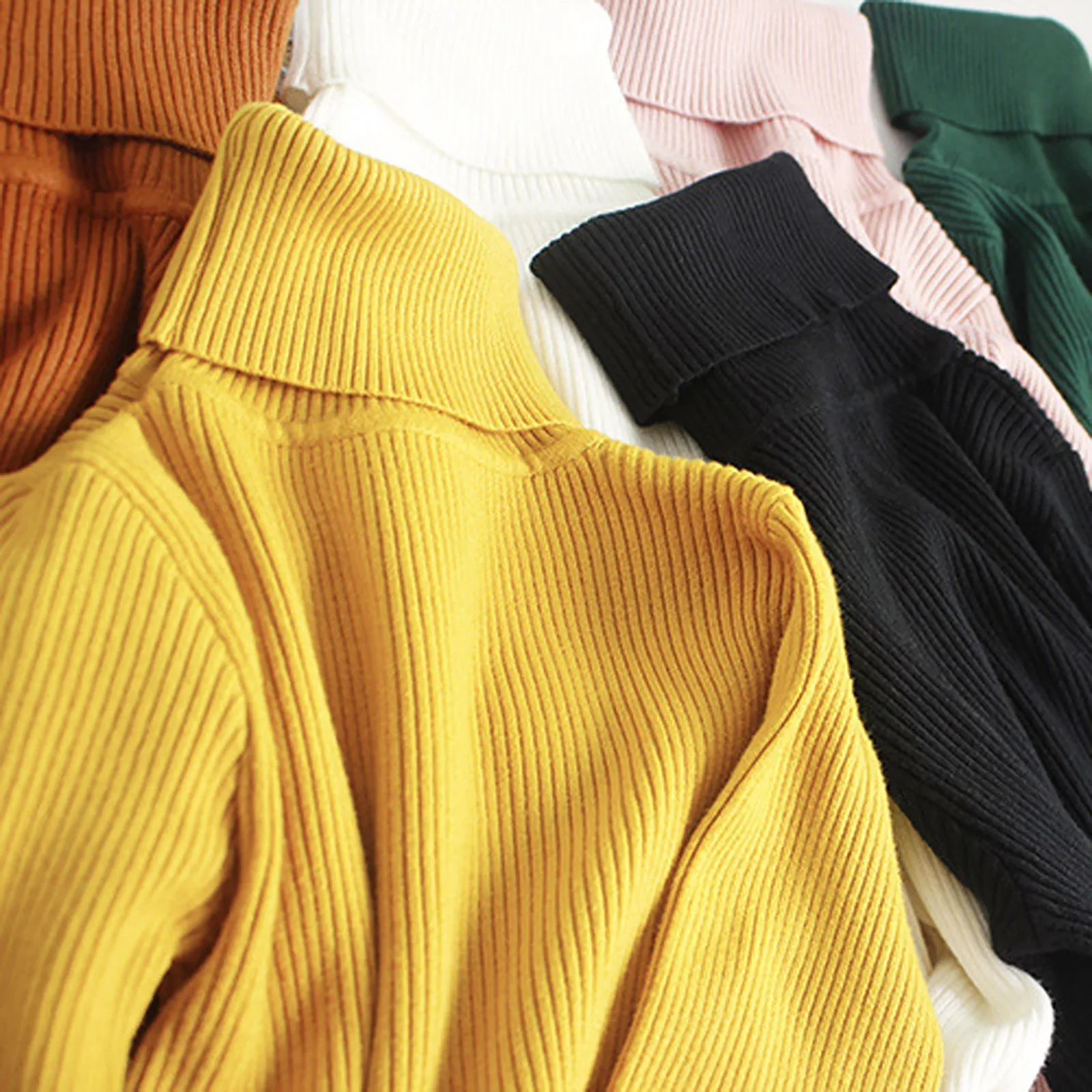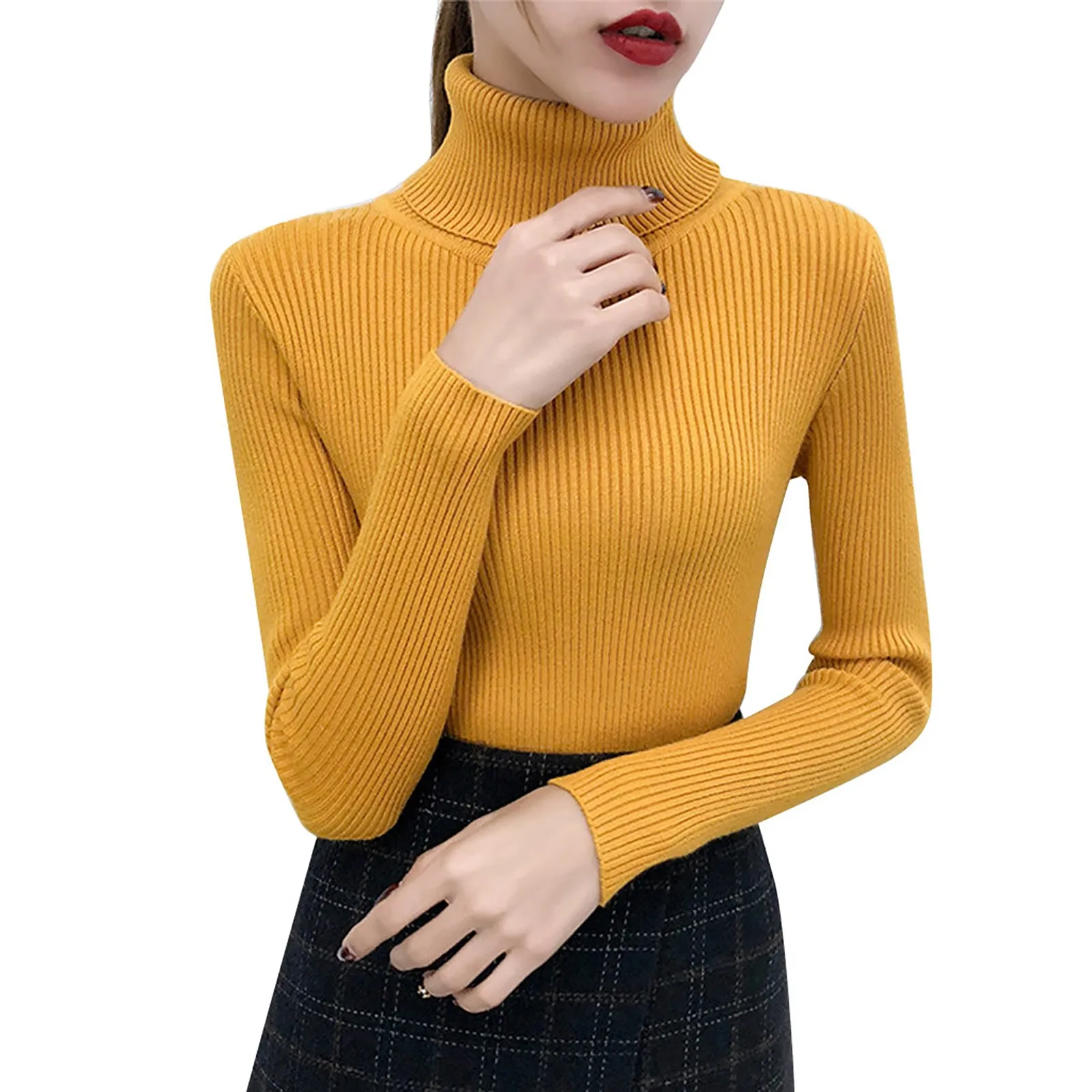 Женский модный однотонный свитер с длинным рукавом и воротником под горло, свободный трикотажный пуловер из овечьей шерсти