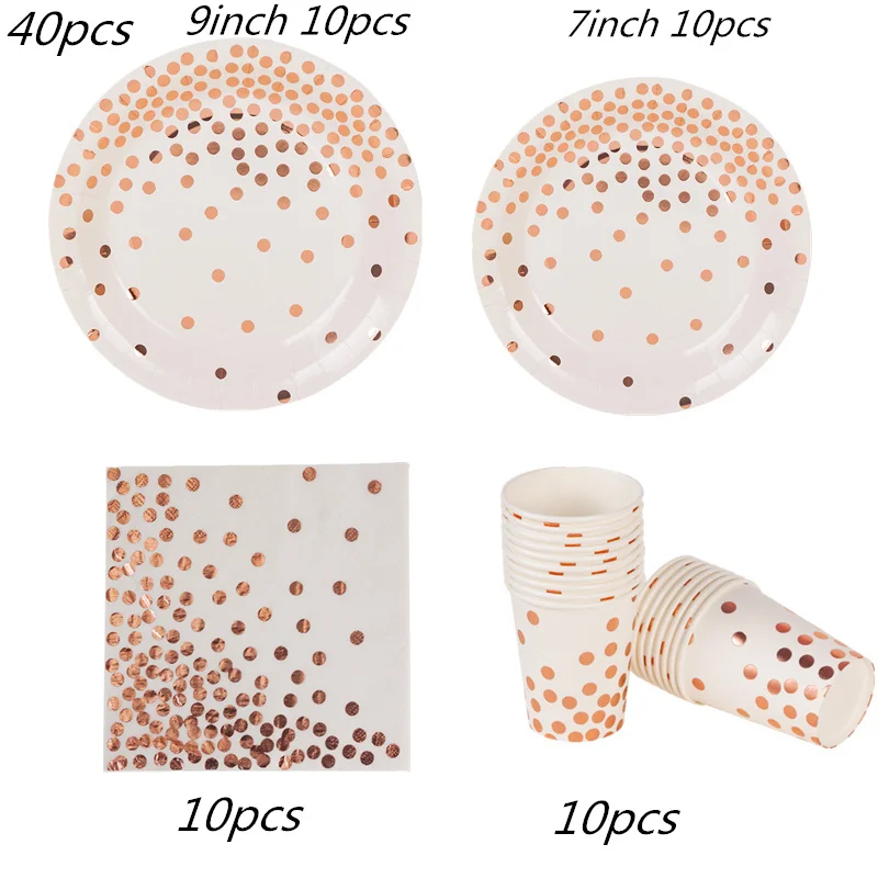 Номер моделиRose Gold Happy Birthday Dot Tableware Set