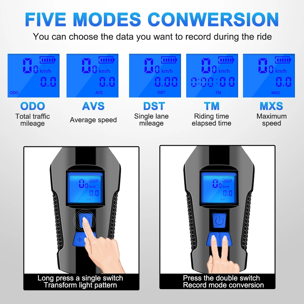 Велосипедный светодиодный передний фонарь T6, 1000 лм, зарядка через USB, фонарь, электрический велосипедный гудок, велосипедный компьютер, спидометр, секундомер