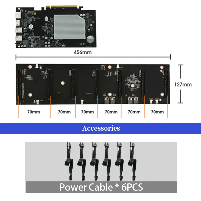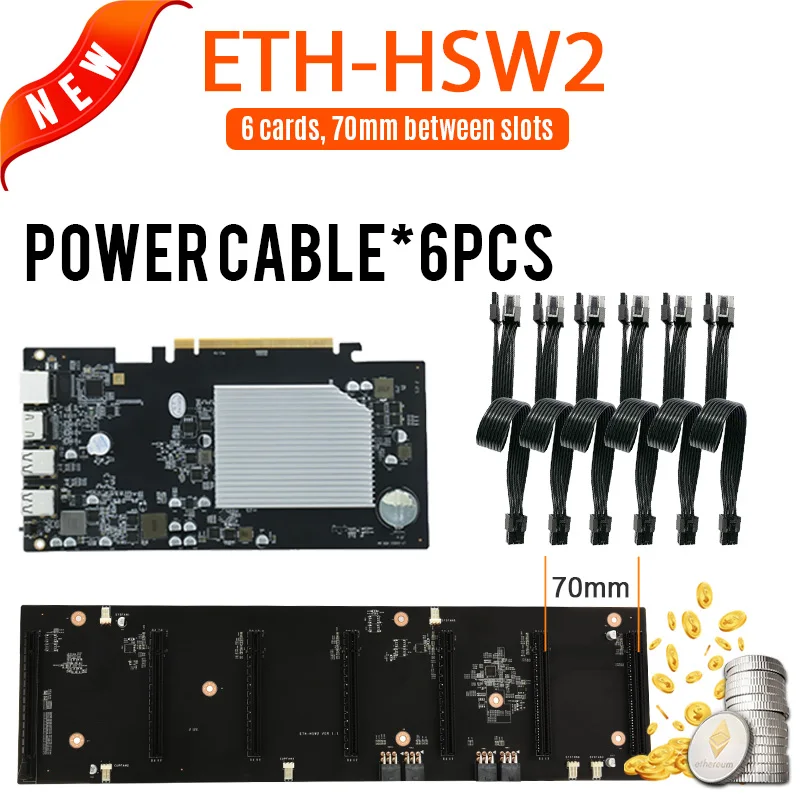 Набор материнской платы для майнинга ETH-HSW2 6 GPU (расстояние 70 мм) с кабелем питания для биткоинов, криптовалюм, поддержка DDR3 PCIEX16, графическое видео