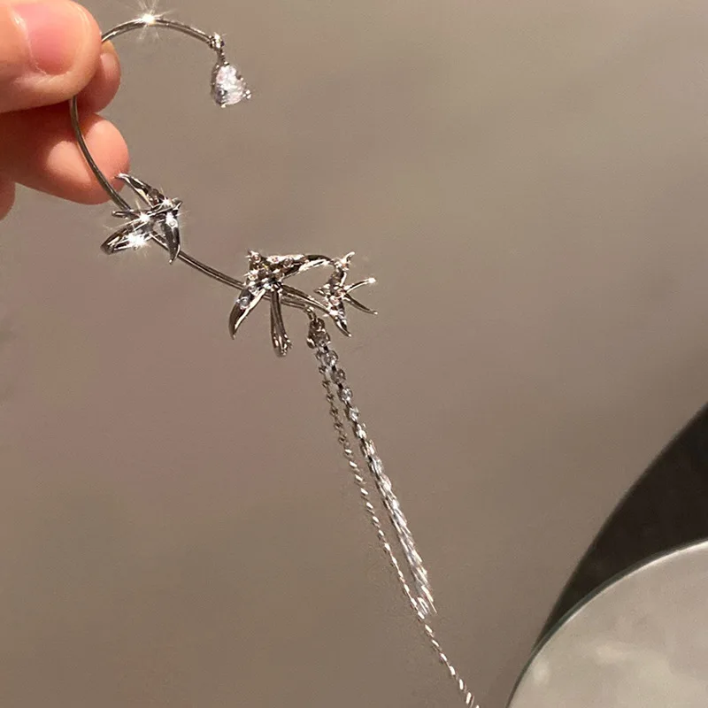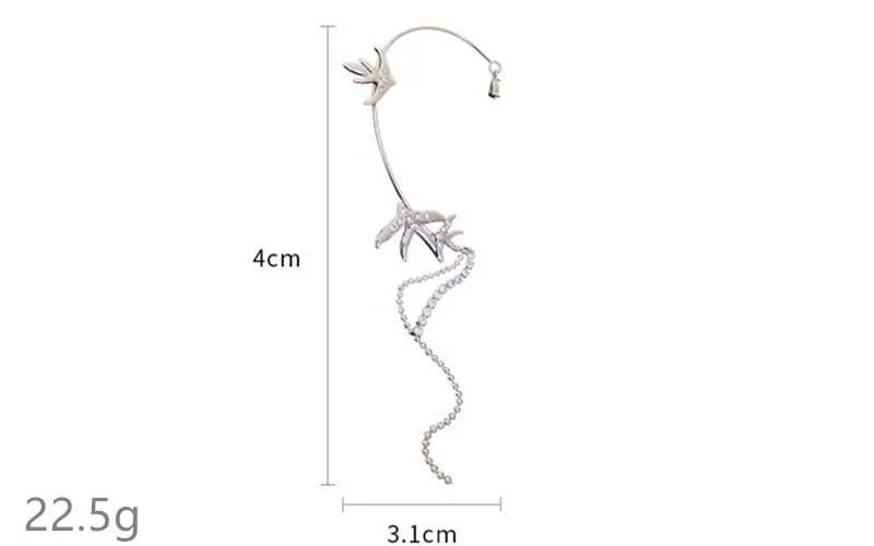 Одинарные ушные манжеты, длинные Стразы, висячие серьги-клипсы с ки...