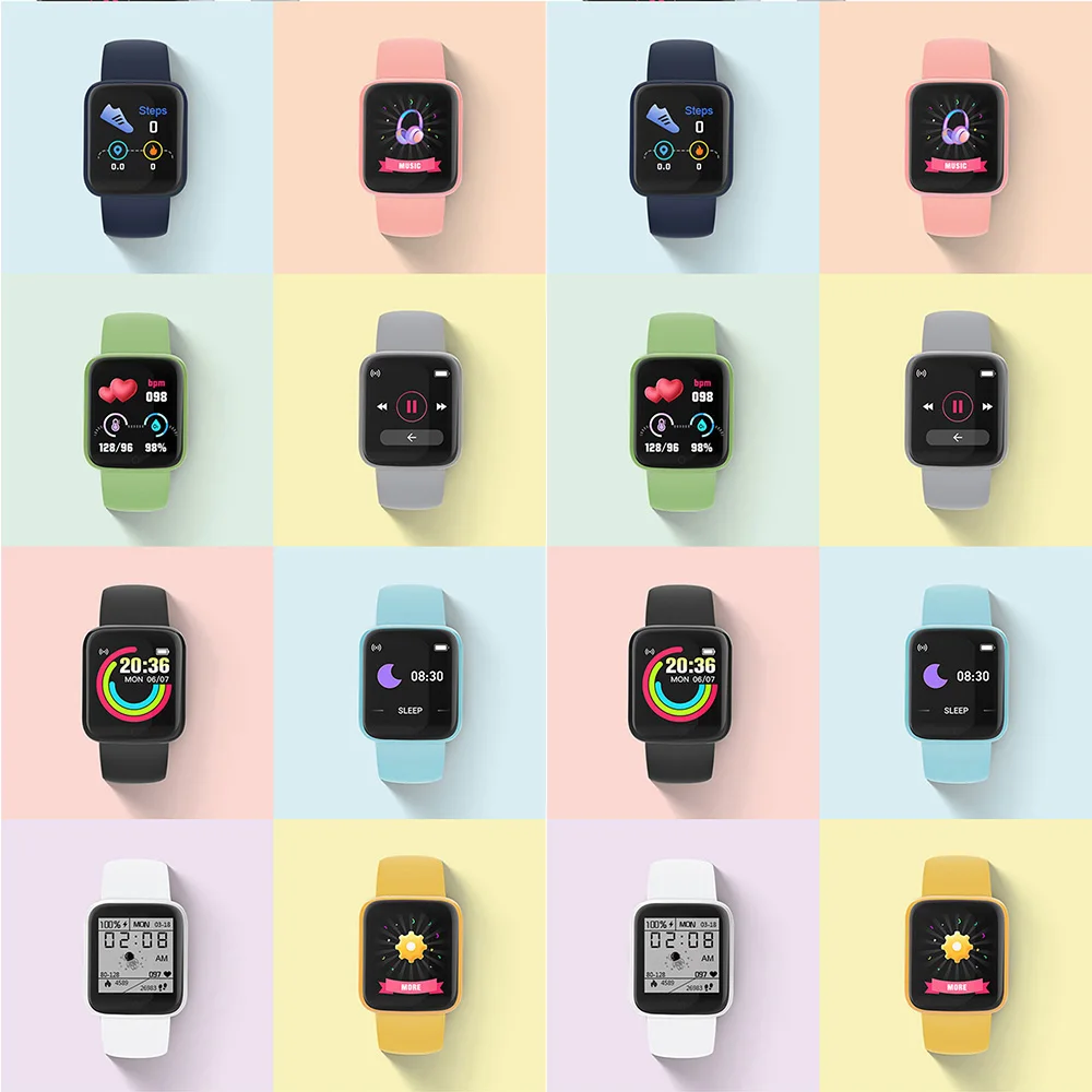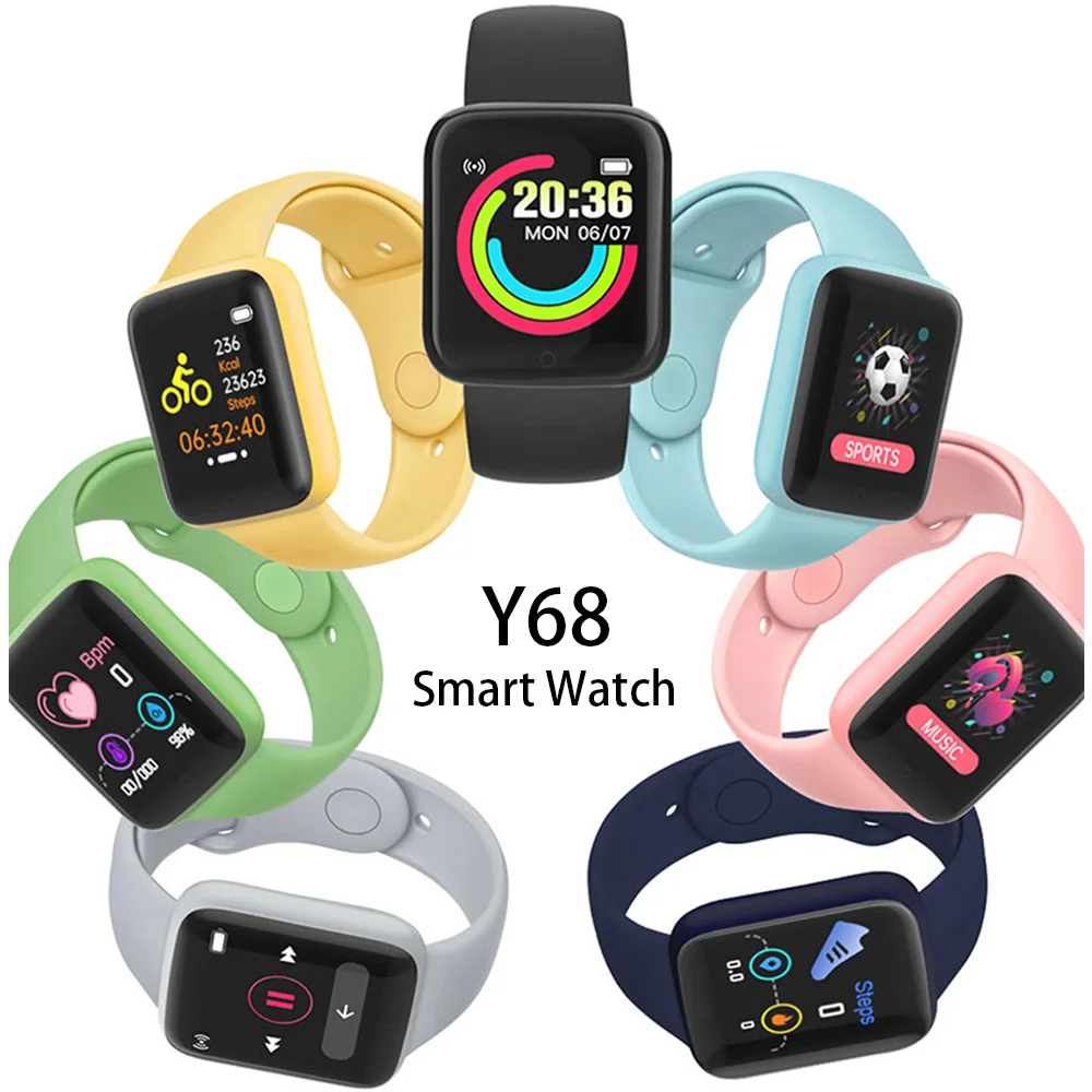 Умные часы Y68 D20, новинка, цветной модный фитнес-трекер Macaron, браслет с пульсометром и тонометром, спортивные умные часы