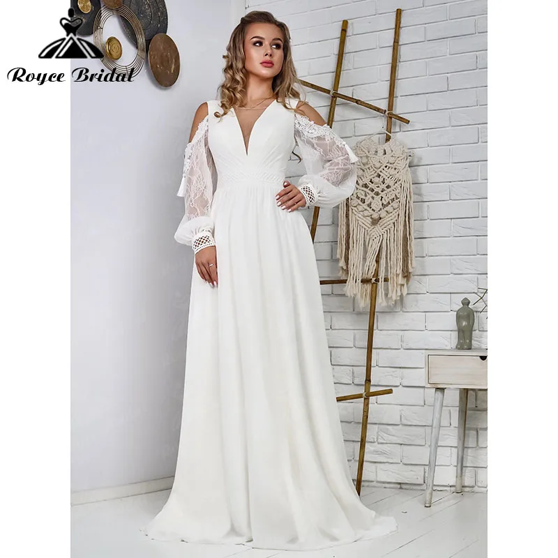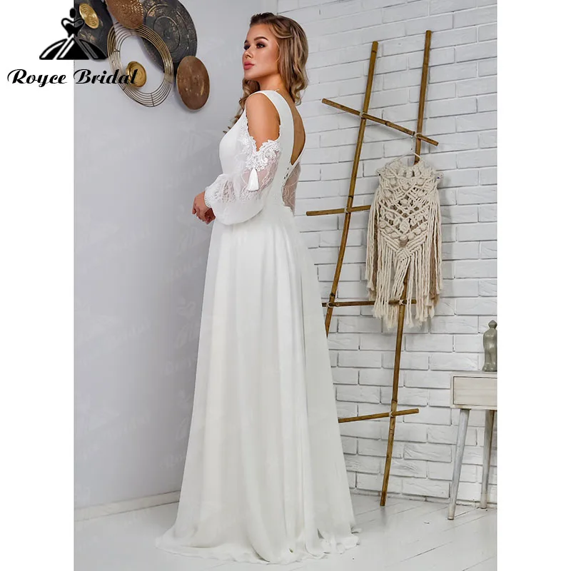 Элегантное богемное свадебное платье в стиле бохо с V-образным вырезом, кружевные платья с открытой спиной и длинным пышным рукавом, эффектные свадебные платья, халат невесты