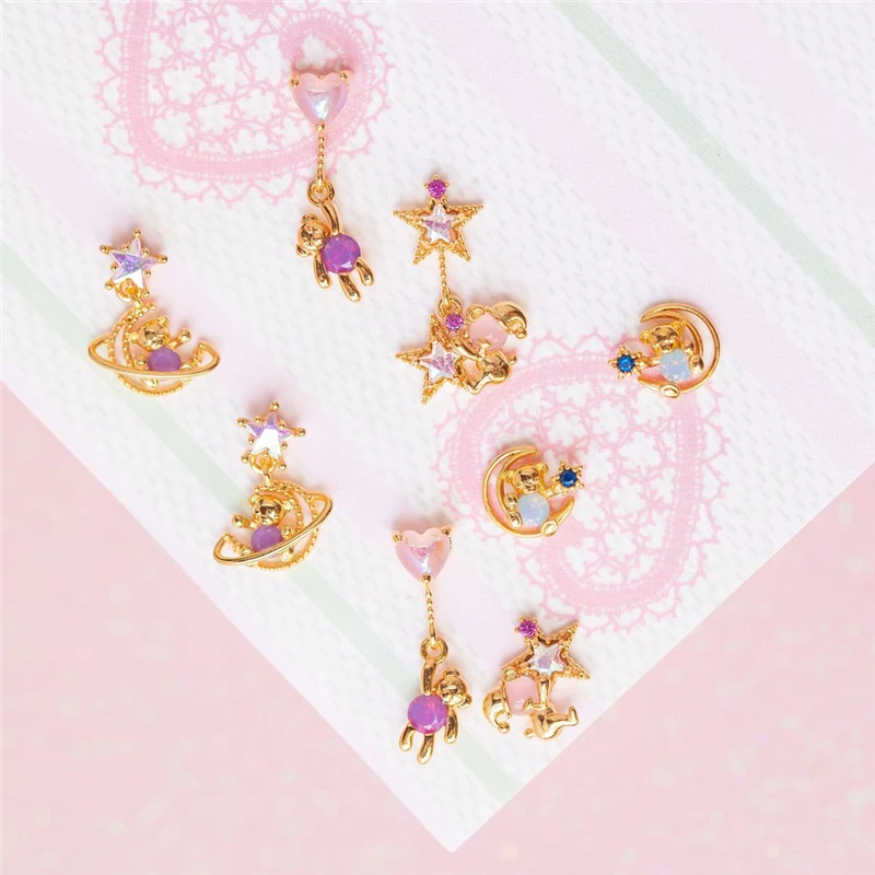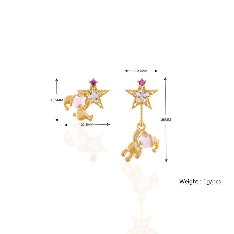 Женские серьги-гвоздики в форме звезды и Луны MC золотого цвета, 1 пара, Роскошные позолоченные медные серьги-медные серьги для пирсинга