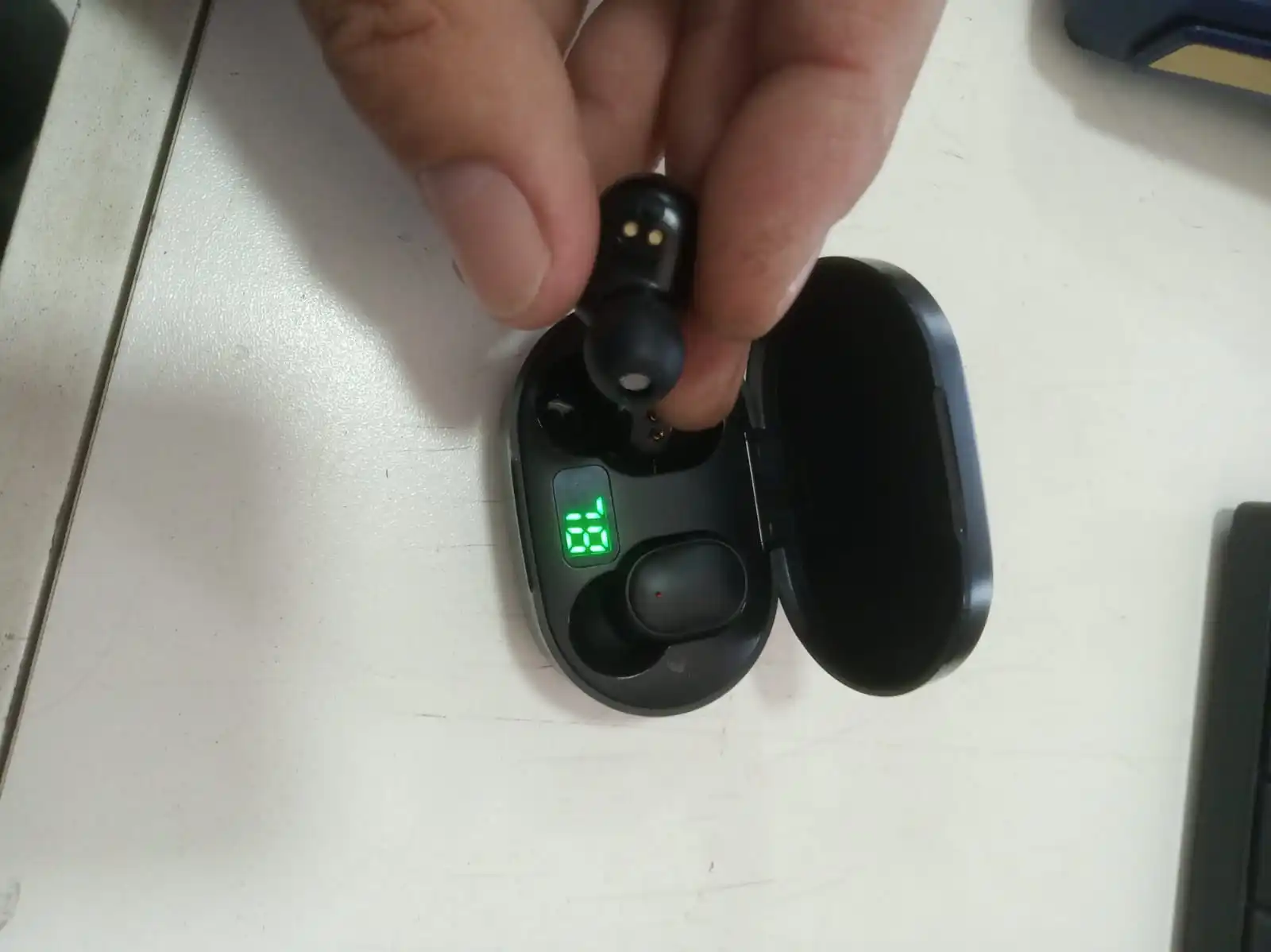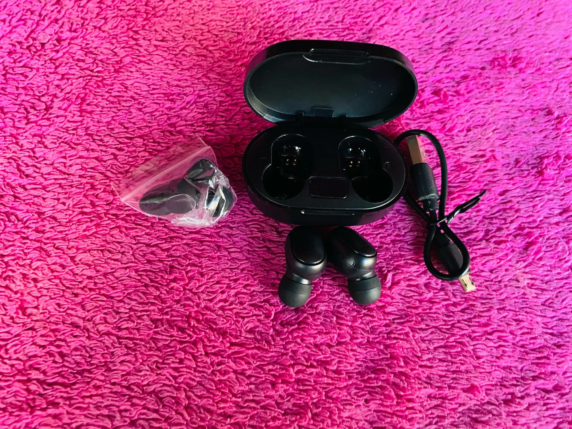 Общая оценка: я рекомендую, я люблю его. + Прибыл в запланированную дату. + Все пришло в отличном состоянии, упаковано, все идеально. + Наушники выглядят совершенно новыми, они определенно не используются в наушниках. + Качество звука отличное. + Серьезный хороший, это удивило меня. + Загружается очень быстро. + Прост в использовании и подключении (используется только на мобильном телефоне). + Дизайн приятный и милый, маленькая коробка и легко носить с собой. + Стерео звук, который выходит из двух наушников индивидуальности, что очень важно на мой взгляд. +-Не легко упасть с ушей, может быть, от вас, лежа на боку, вы можете иногда упасть. -Провод, который приходит для переноски, мал, но, возможно, вы можете использовать другой больший провод, который у вас уже есть.
