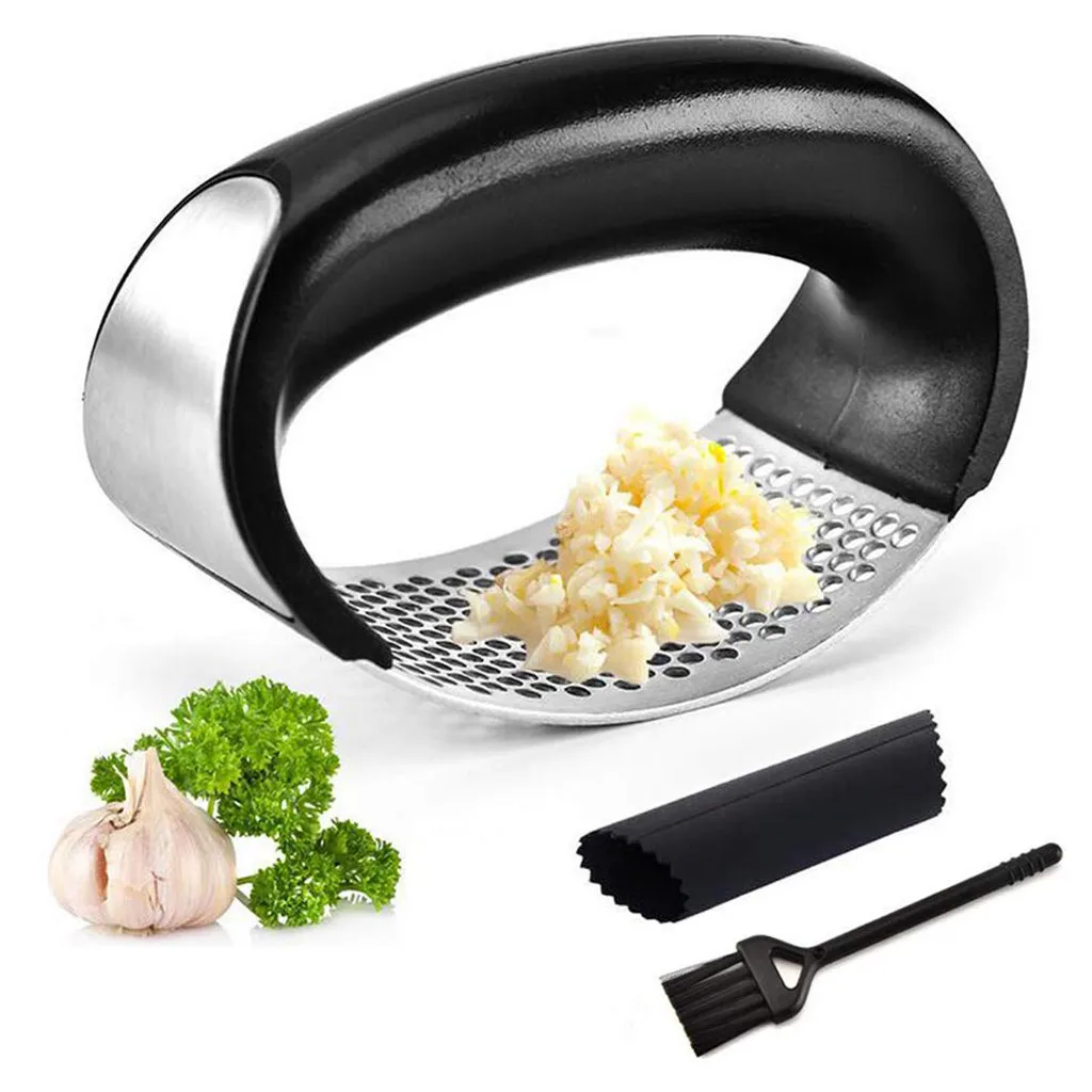 Изогнутый Многофункциональный пресс для чеснока из нержавеющей стали, пресс для чеснока, дробилка для кухни, измельчитель, приспособления для готовки, Чеснокодавка