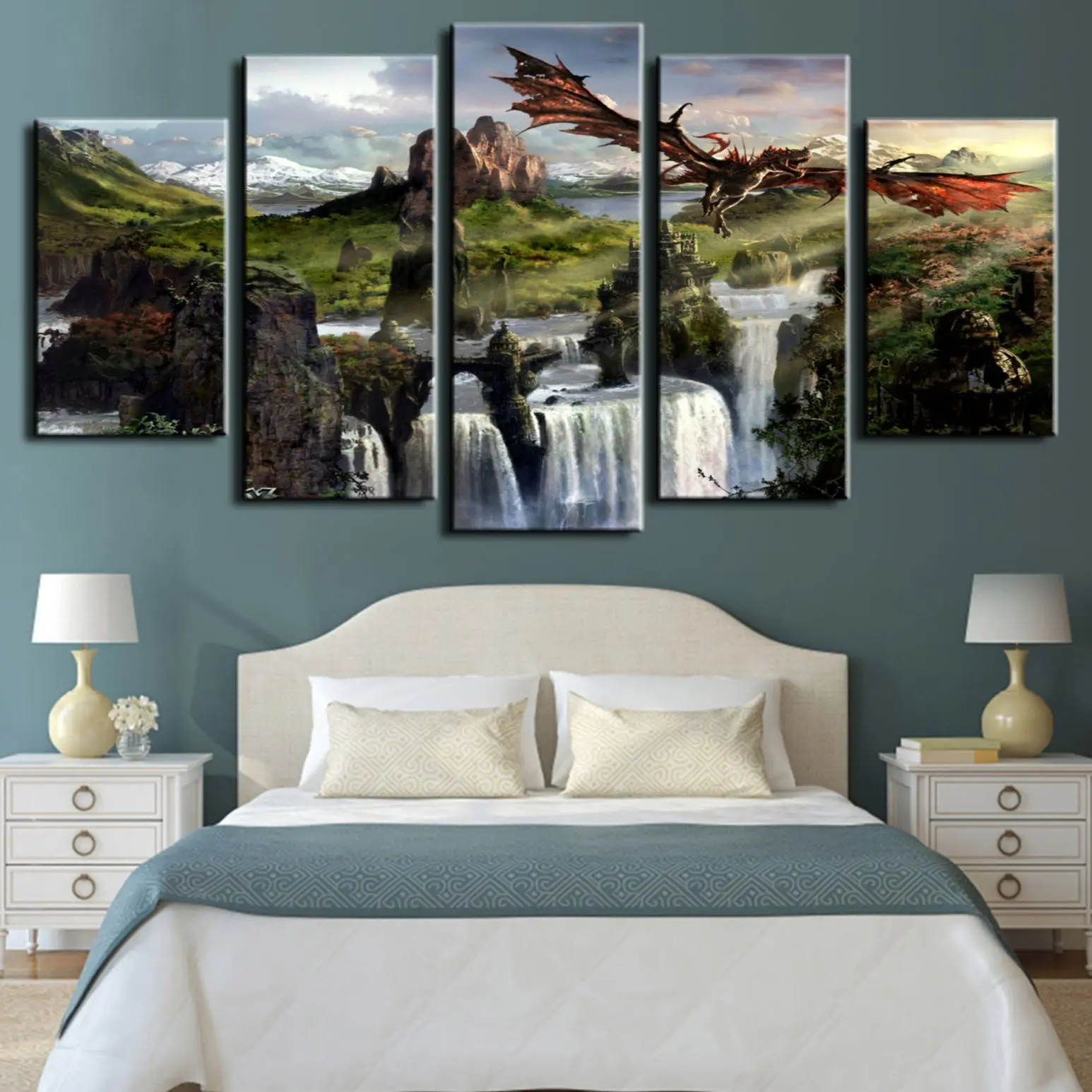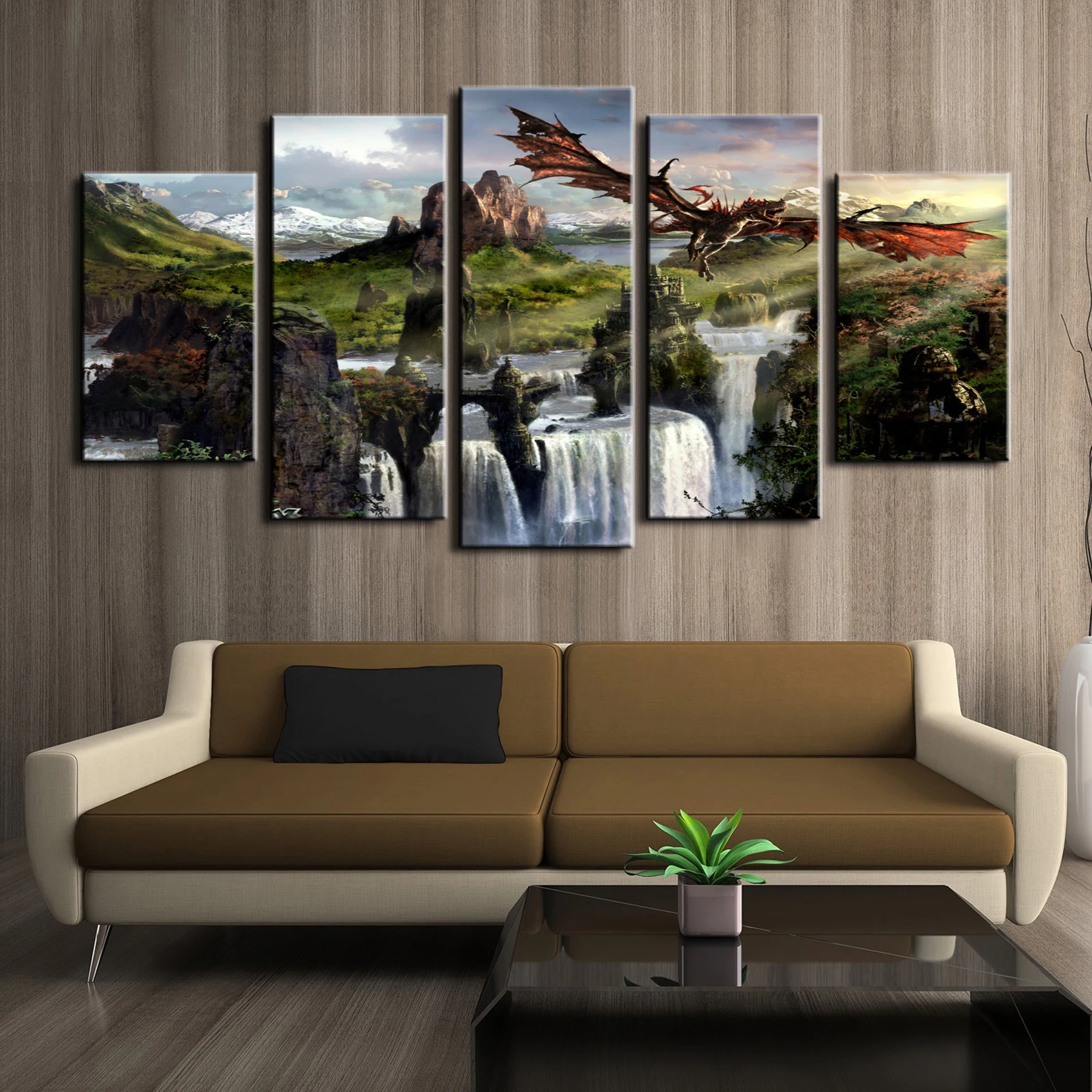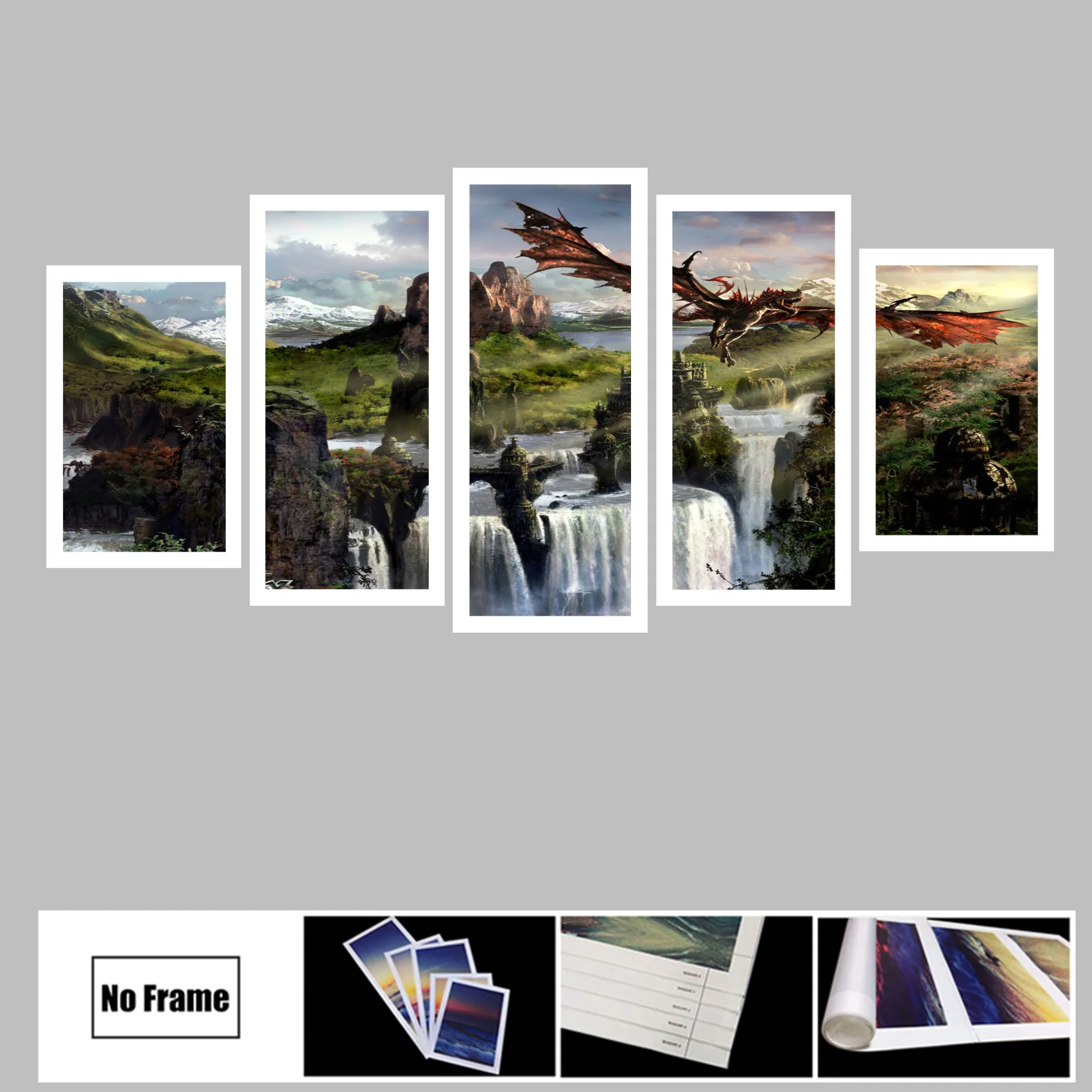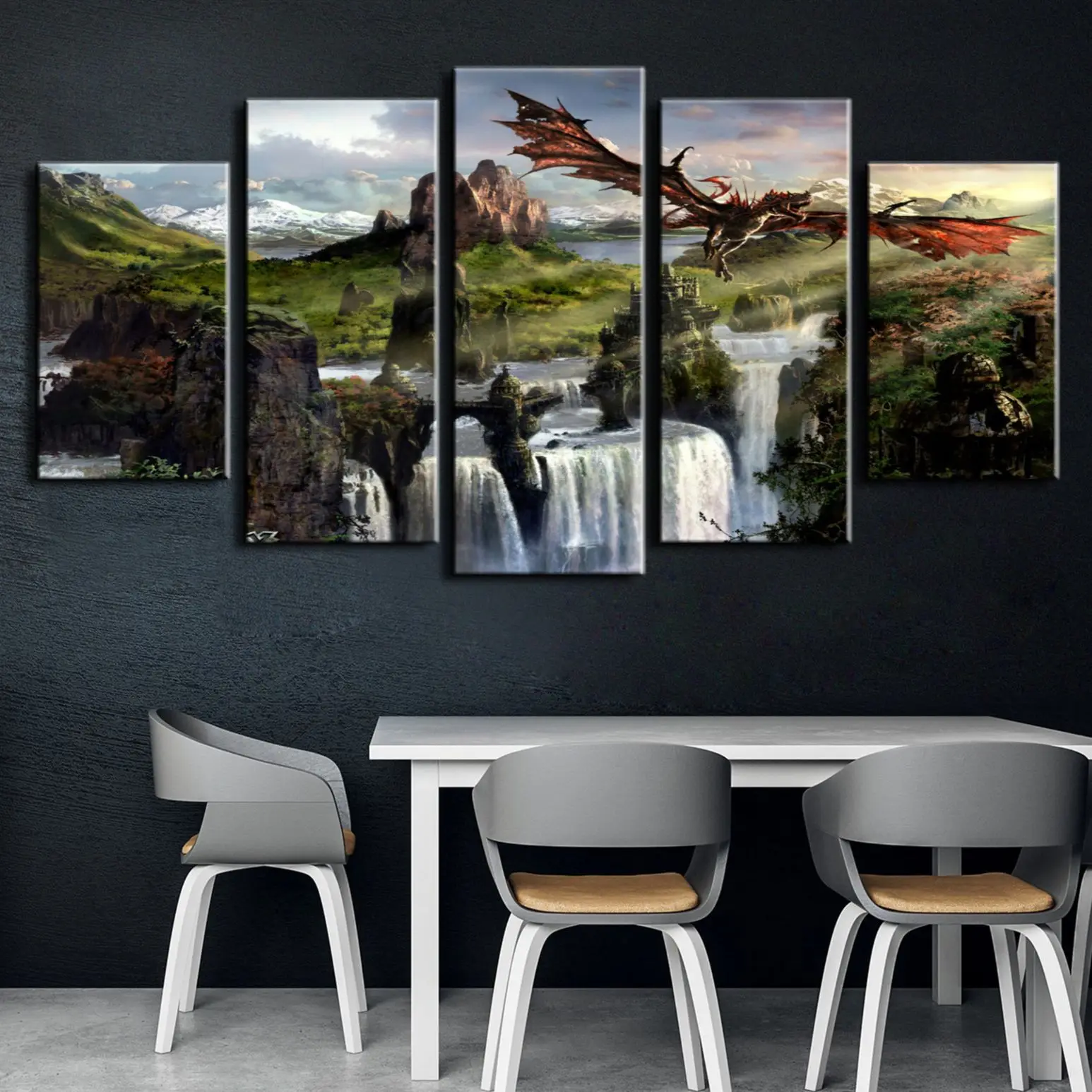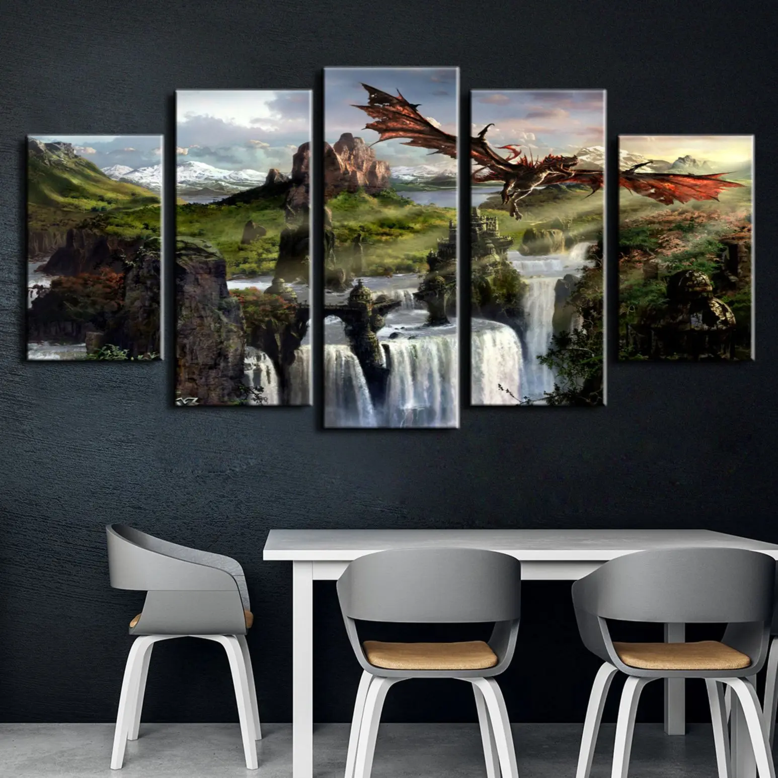 5 панельных картин без рамки с изображением летающего дракона Skyrim игр HD настенные картины на холсте картины Домашний декор для гостиной