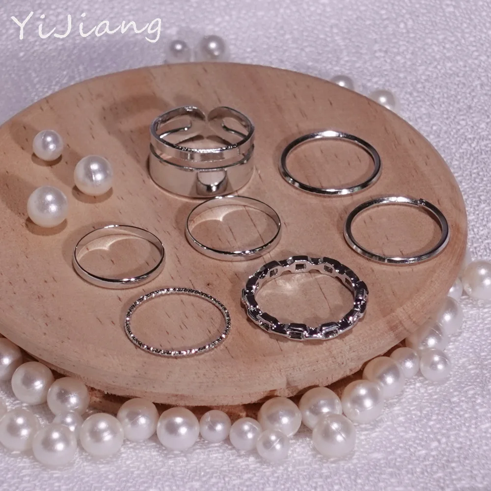 knuckle 7pcs ring set jewelrysilver geometric rings