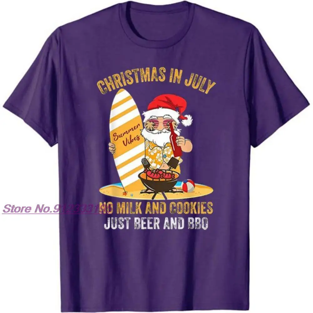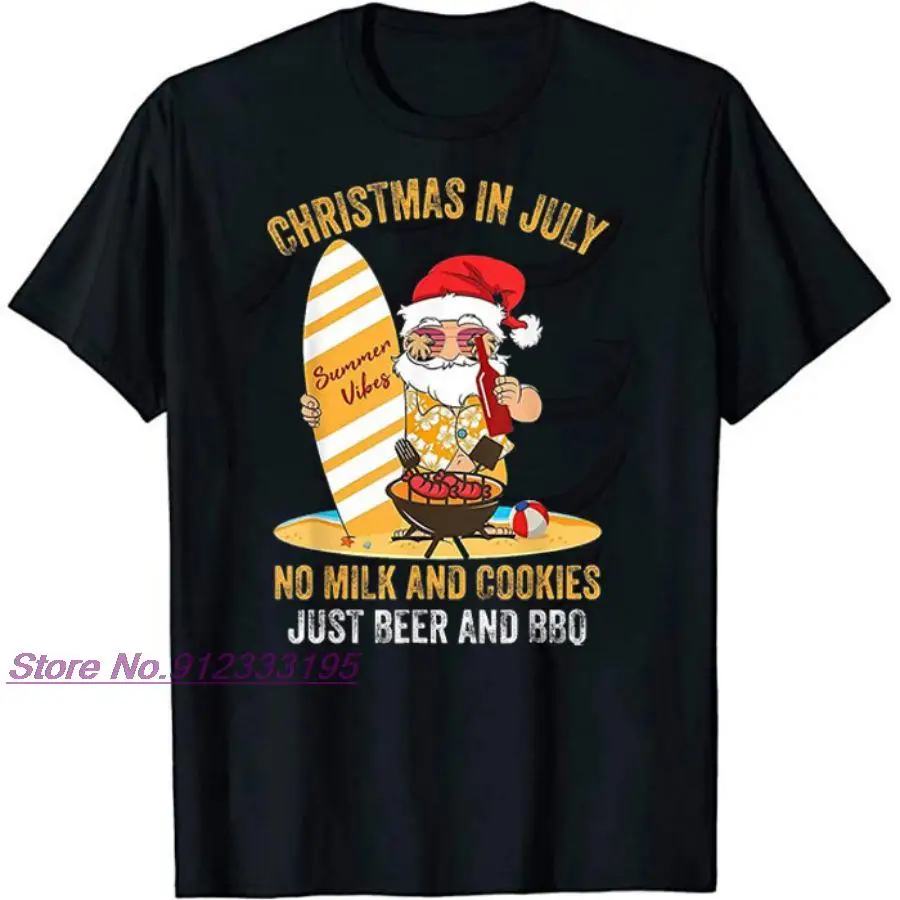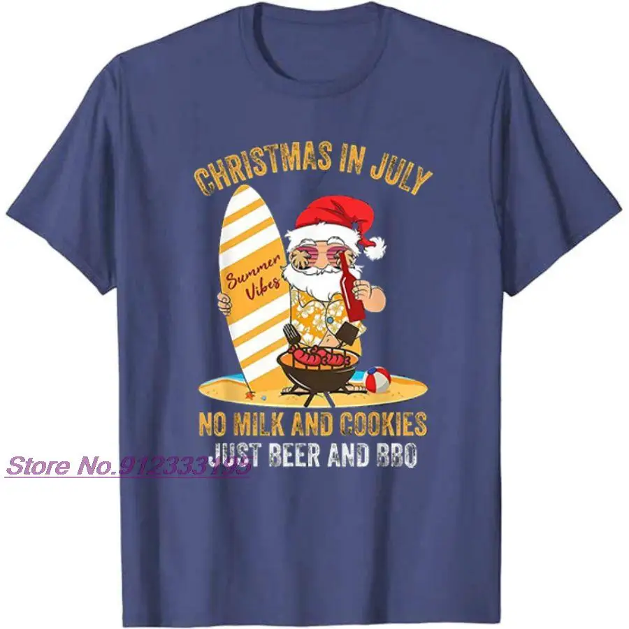 Футболка с коротким рукавом для серферов, Санта-Клауса, пива и барбекю, лето 2021