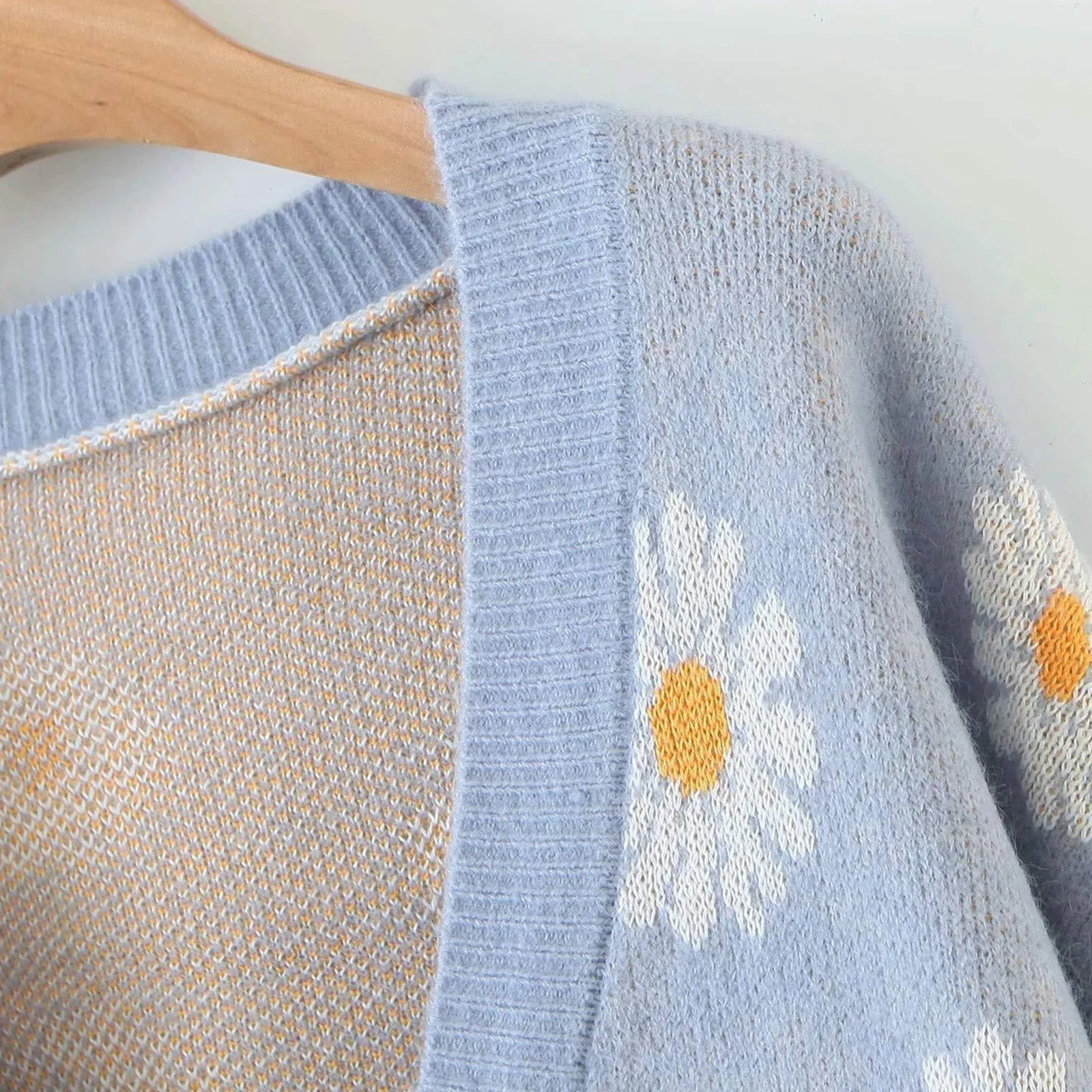 Женский цветочный свитер, кардиган-элегантный стиль, v-образный вырез, длинный рукав, Повседневный свитер, 90s, открытая передняя пуговица, свободный эстетический трикотаж, топы, короткие костюмы, женский пуловер в цветочек, болеро