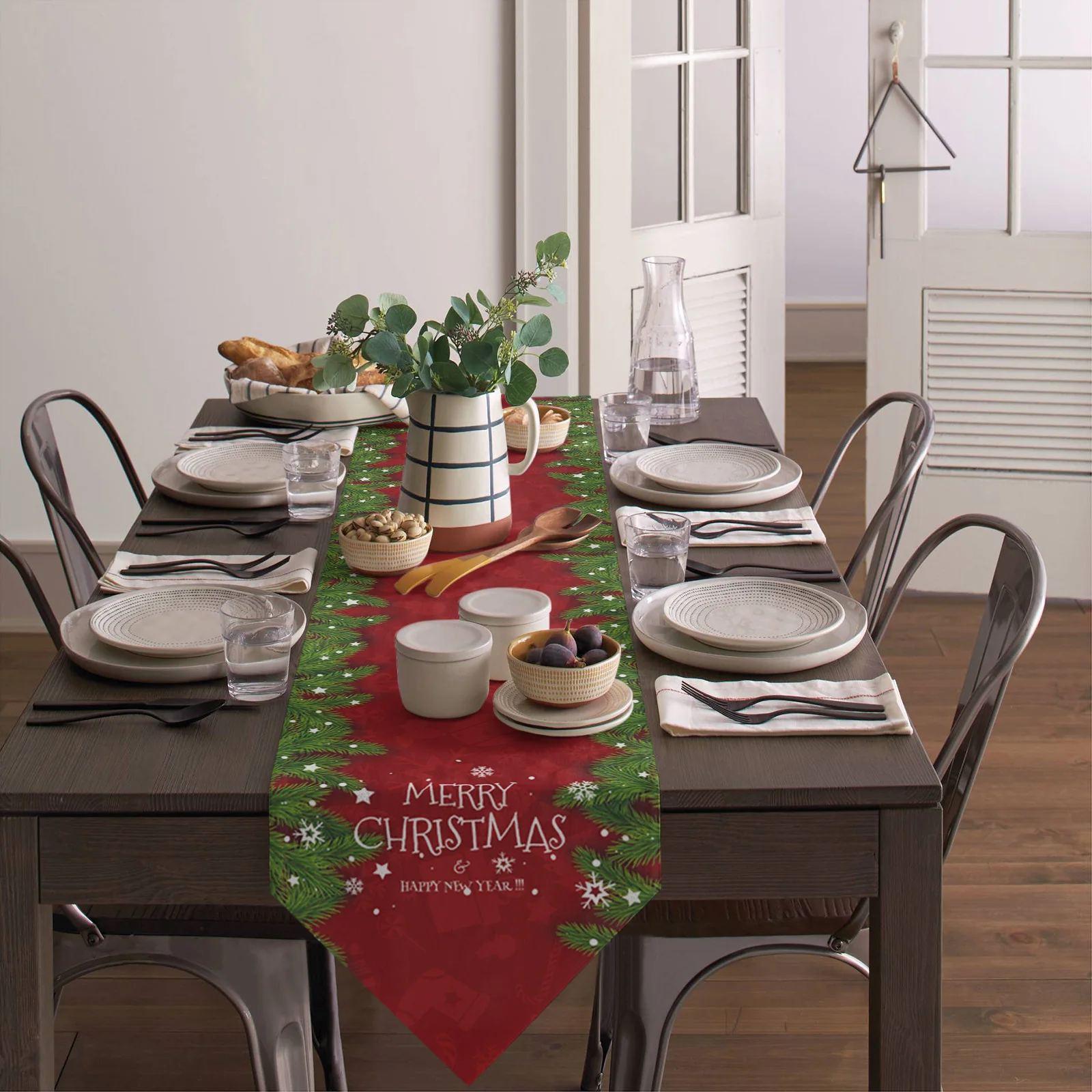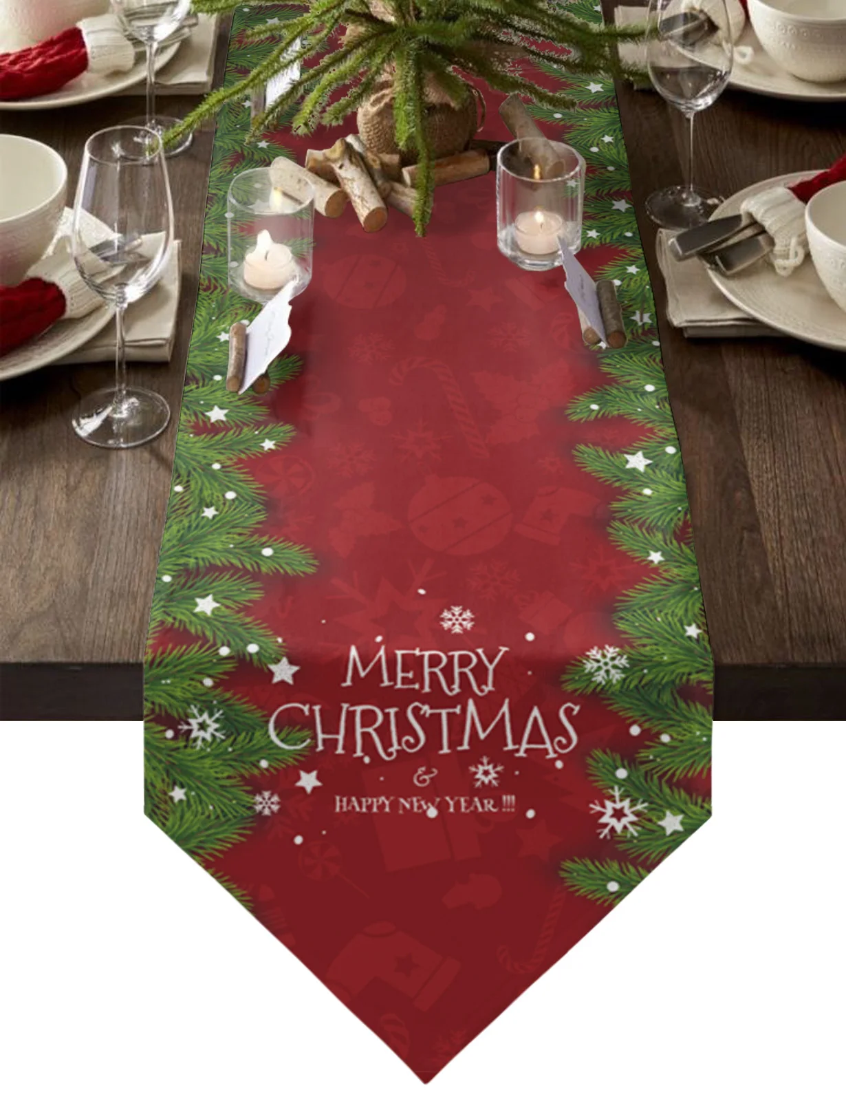 Скатерть из сосновой ветви и снежинок для украшения стола