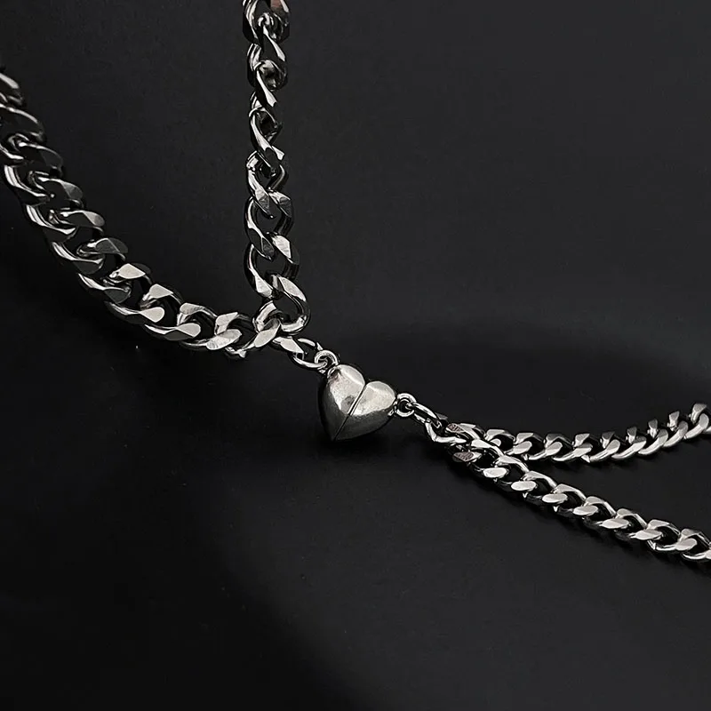 Браслеты магнитные в форме сердца для пар, ювелирные украшения из нержавеющей стали с кубинской цепью, кресты, 2 шт.