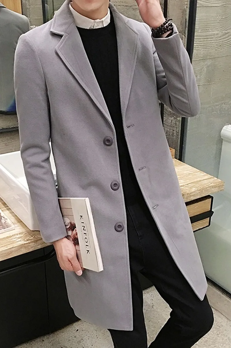 Модная мужская однотонная ветровка, мужское длинное шерстяное пальт...
