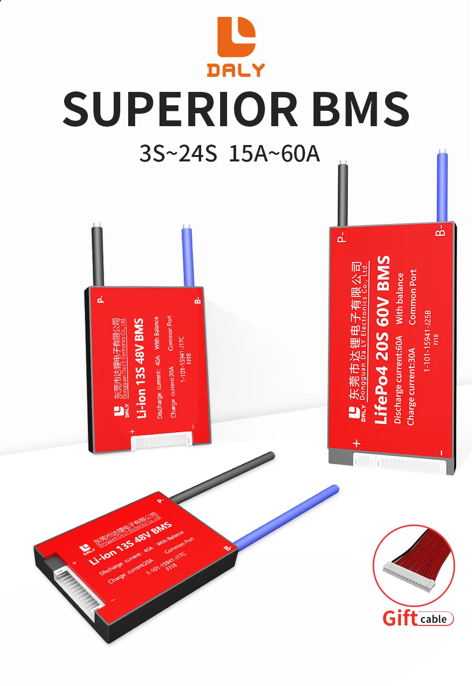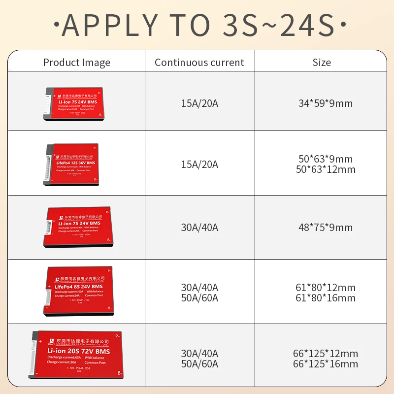 ◆Для той же модели, его ток заряда меньше, чем ток разряда, потому что Daly PCBAs были обновлены, чтобы хорошо защитить батарею клиента.