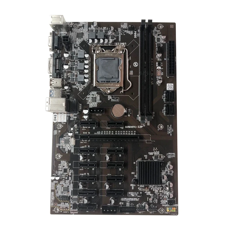 Материнская плата B250 для майнинга BTC, 12 слотов для графической карты, LGA 1151 DDR4 SATA3.0 USB3.0, низкая мощность для майнинга BTC