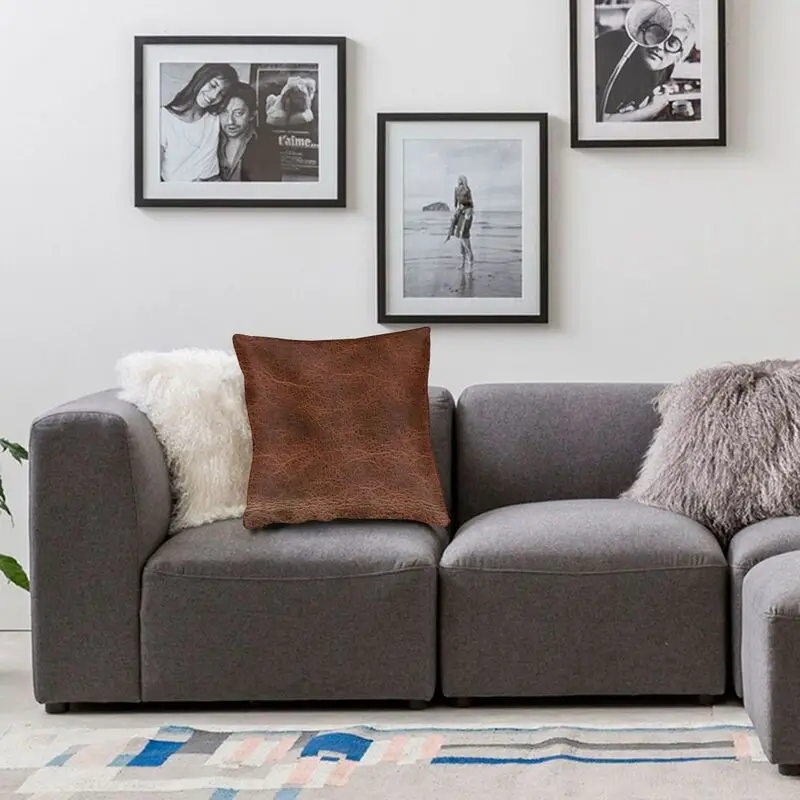 Коричневая Кожаная Наволочка на молнии для дивана гостиной винтажны...