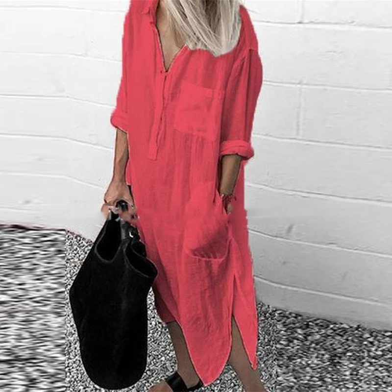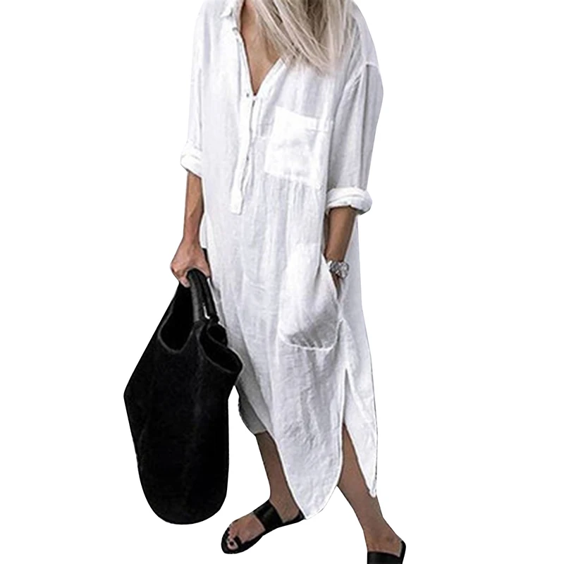 Женское Элегантное Длинное Платье-рубашка из хлопка и льна, модное ...