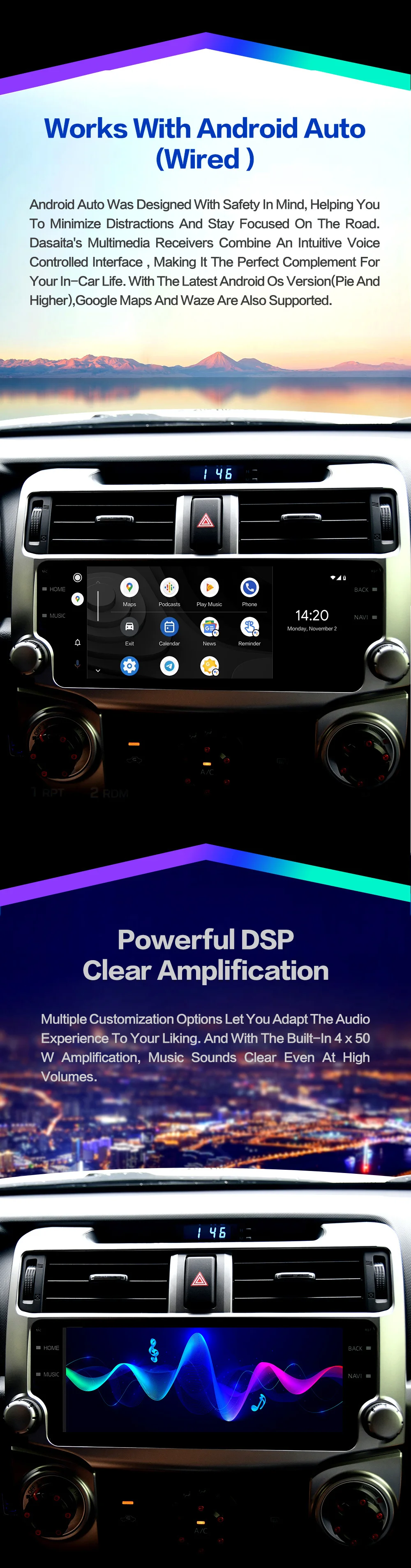 Автомобильный радиоприемник Dasaita, 10,2 дюйма, Android, для Toyota 4Runner, GPS, 2011, 2014, 2015, 2017, 2018, 2019, навигация, 64 Гб ПЗУ, Carplay, 1280*720