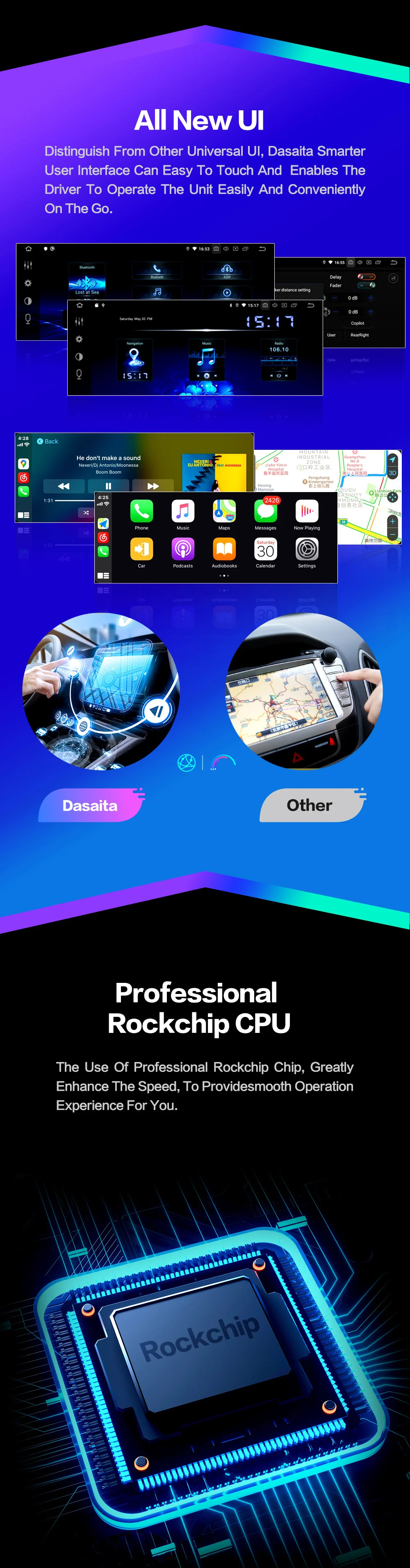 ОС: Android 10,0Процессор: RK3399, двойной Cortex-A72 + Quad Cortex-A53, 64-разрядный процессорОЗУ: 4 ГбROM : 64 ГБГрафический процессор: Mali-T860MP4Радио: ST7708Bluetooth 5,0: RF210Разрешение: 1280*480Экран: IPSКнопка подсветки: RGB