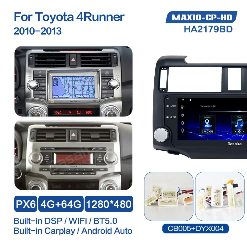 Эта продукция подойдет для Toyota 4runner 2010 2011 2012 2013 2014 2015 2016 2017 2018 2019Оригинальный dash имеет 3 типа радио жгут, пожалуйста, заказывайте с правильными моделямиДля 2010-2013 пожалуйста, закажите HA2179SD-MAX10-CPДля 2014-2019 пожалуйста, заказывайте HA2179S-MAX10-CP