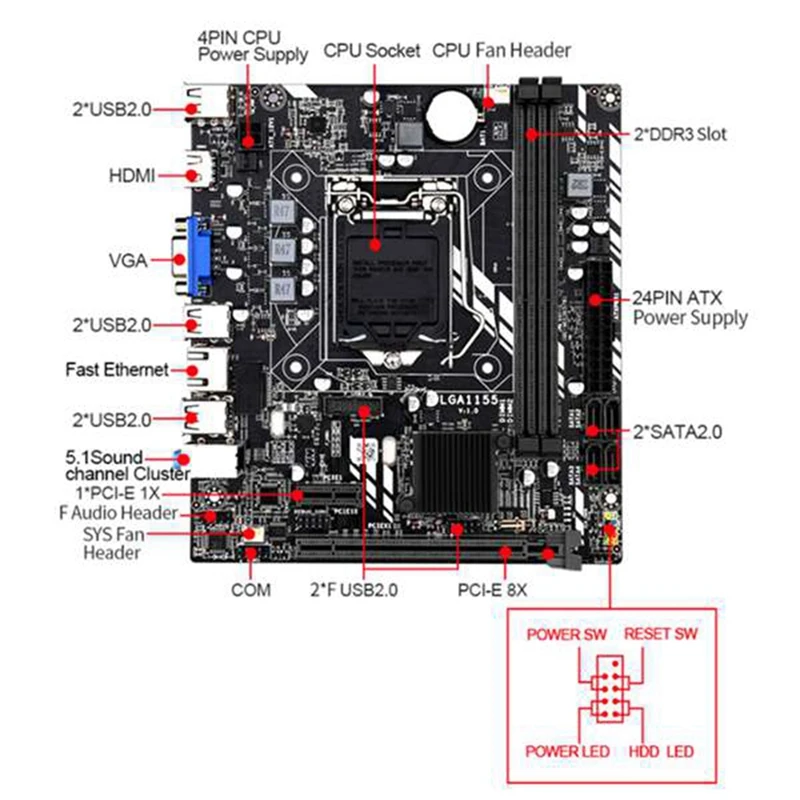 Материнская плата LGA 1155 для Core I3I5 I7Pentium Celeron LGA1155 DDR3 M-ATX Материнские платы H61