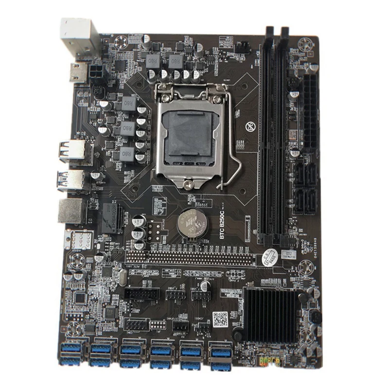 Материнская плата B250C для майнинга BTC + кабель переключателя 12x...