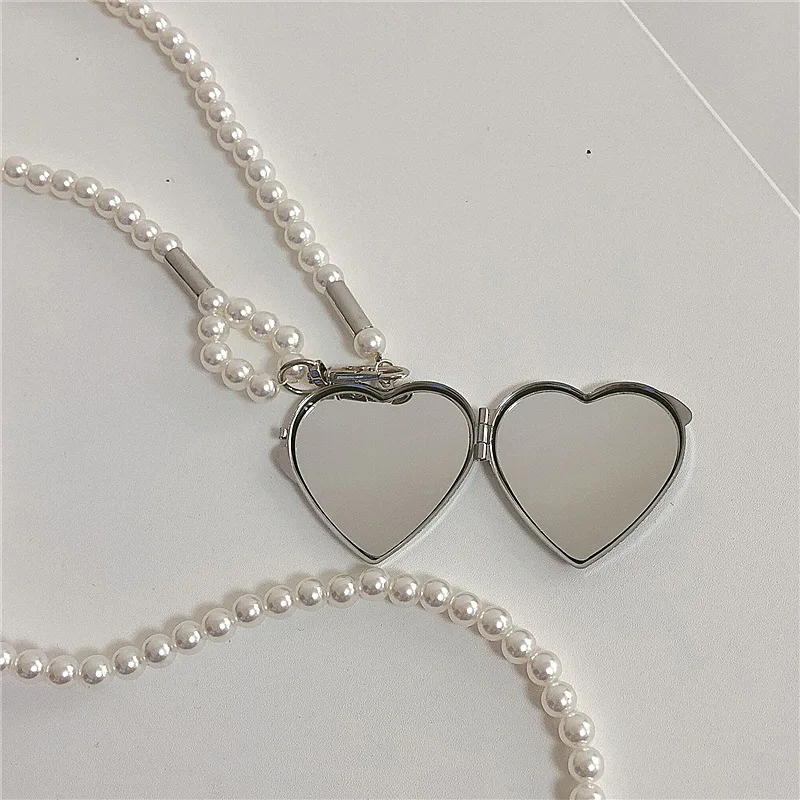 Женское длинное ожерелье с подвеской в виде сердца, с большим зерка...