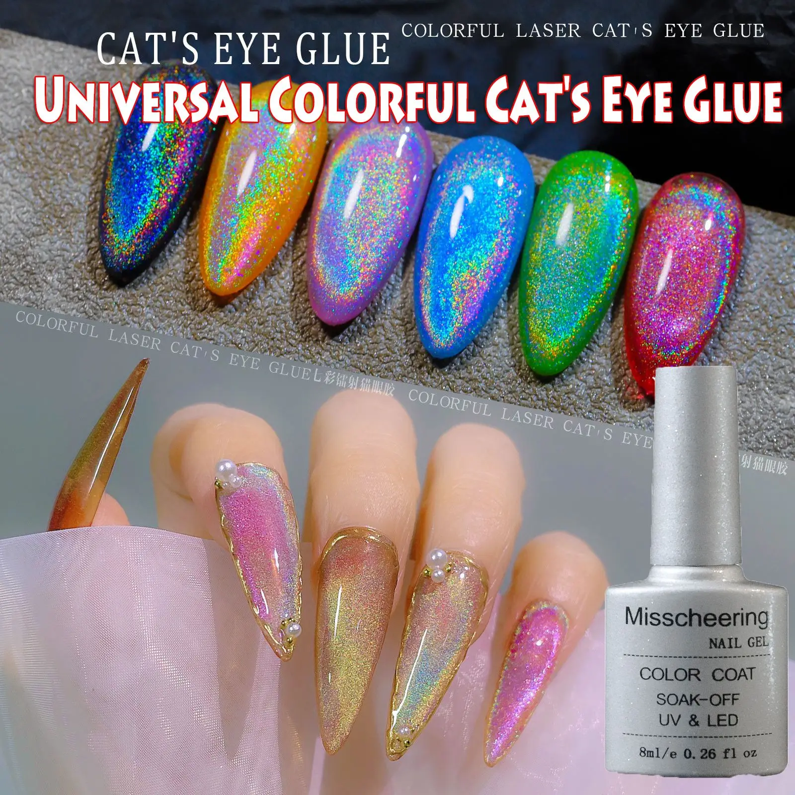 8 мл Универсальный Красочный клей кошачий глаз глянцевый гель кошачий глаз Аврора Блестящий Алмазный отмачиваемый УФ-гель для ногтей гель лак для ногтей