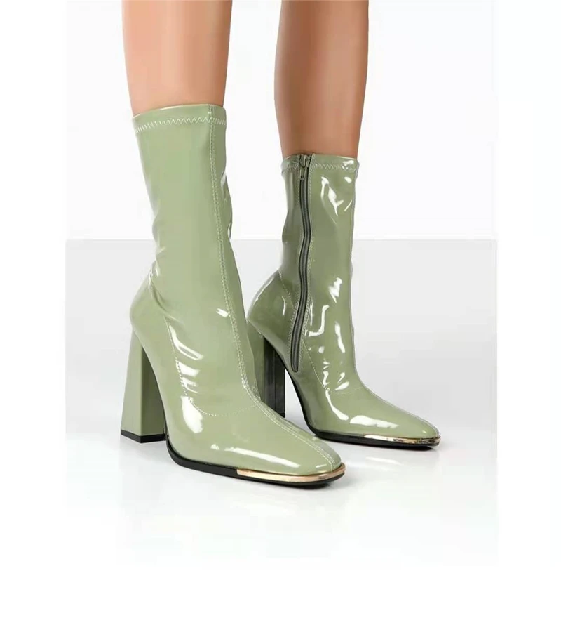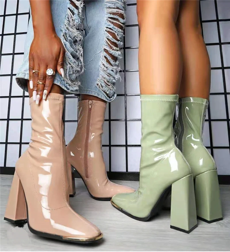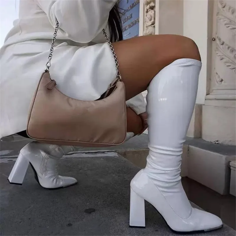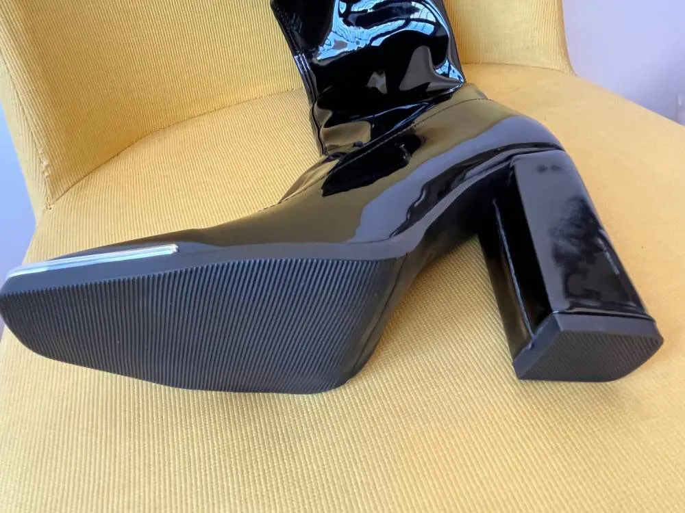 Женские сапоги на квадратном каблуке Termainoov, высокие сапоги до колена из лакированной кожи с острым носком, зимние сапоги большого размера 43, сапоги на молнии