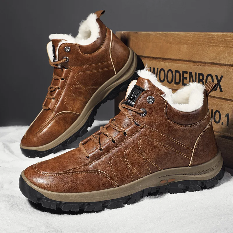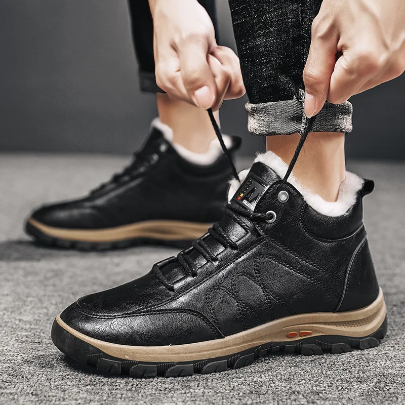 Зимние теплые кроссовки, мужские высокие берцы, искусственный мех, ...