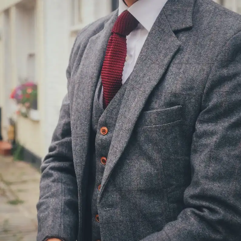 Официальные мужские костюмы из твида в стиле ретро с узором «елочка», 3 предмета, высококачественный пиджак делового костюма, жилет, штаны, свадебные смокинги для жениха