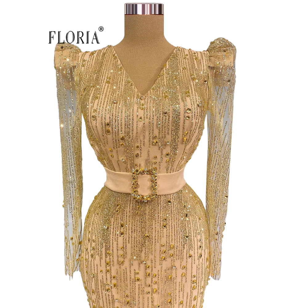 Женское коктейльное платье 2 в 1 Floria, золотистое и серебристое кружевное вечернее платье с V-образным вырезом и длинным рукавом, с перьями, 2022