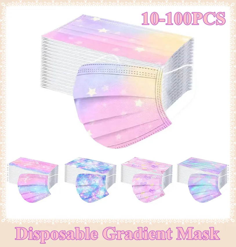 10-100 шт., разноцветные одноразовые маски для рта с рисунком