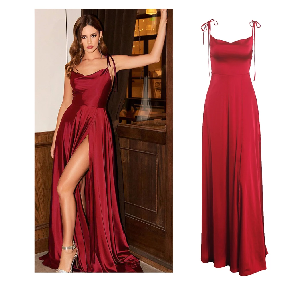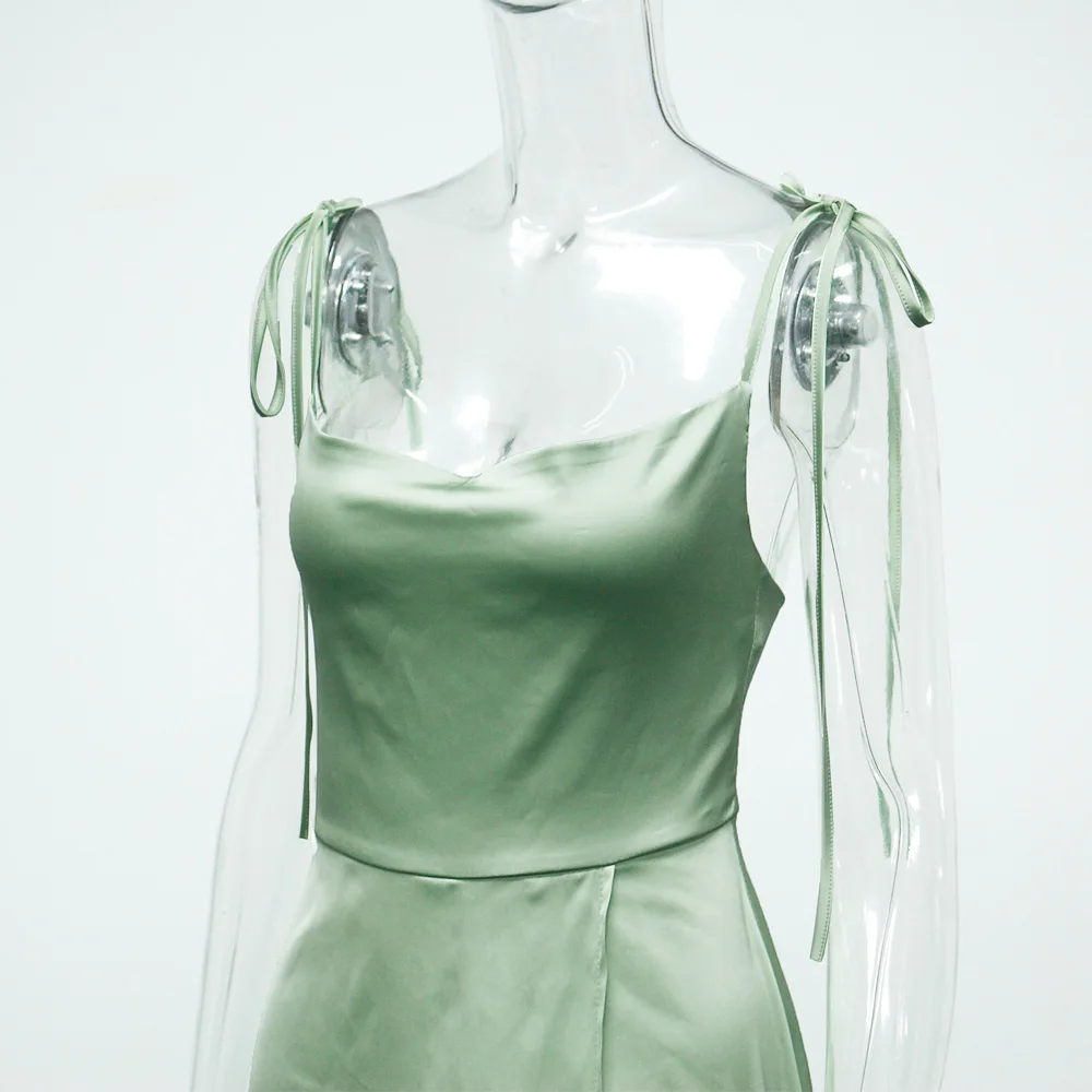 Женское атласное платье на тонких бретельках, элегантное вечернее п...