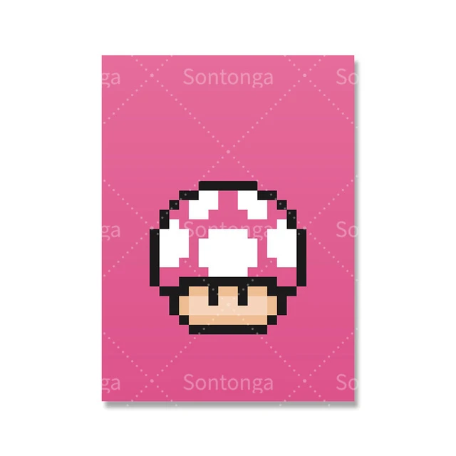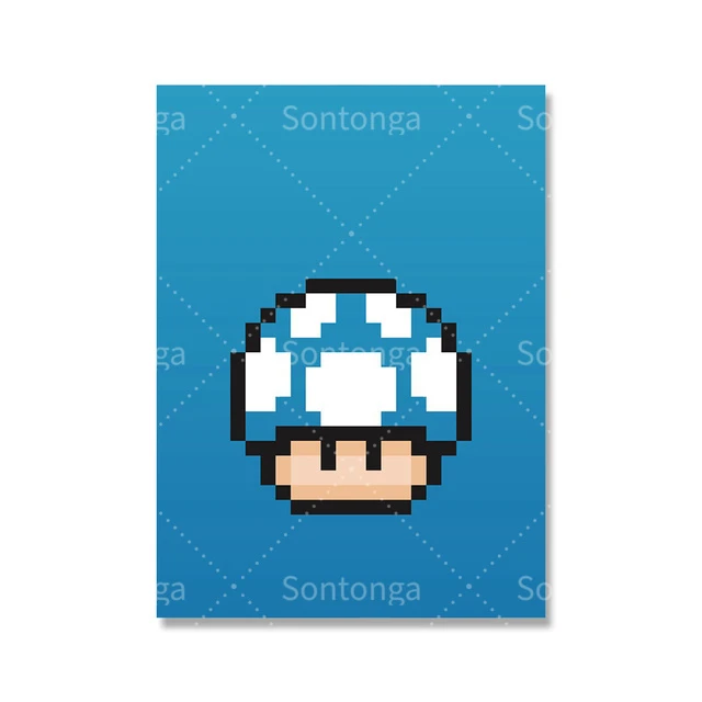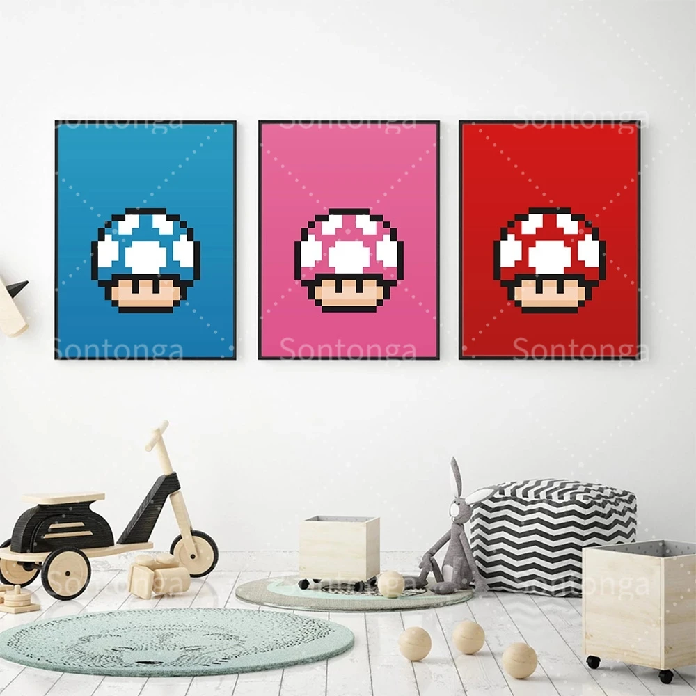 Картина на холсте с изображением грибов синего, зеленого, красного, розового, белого цветов, Марио, грибы, настенные художественные принты, плакат, подарки для детей, сувенир