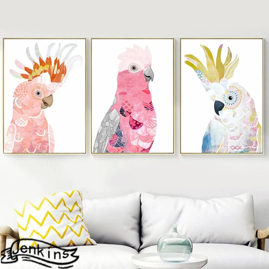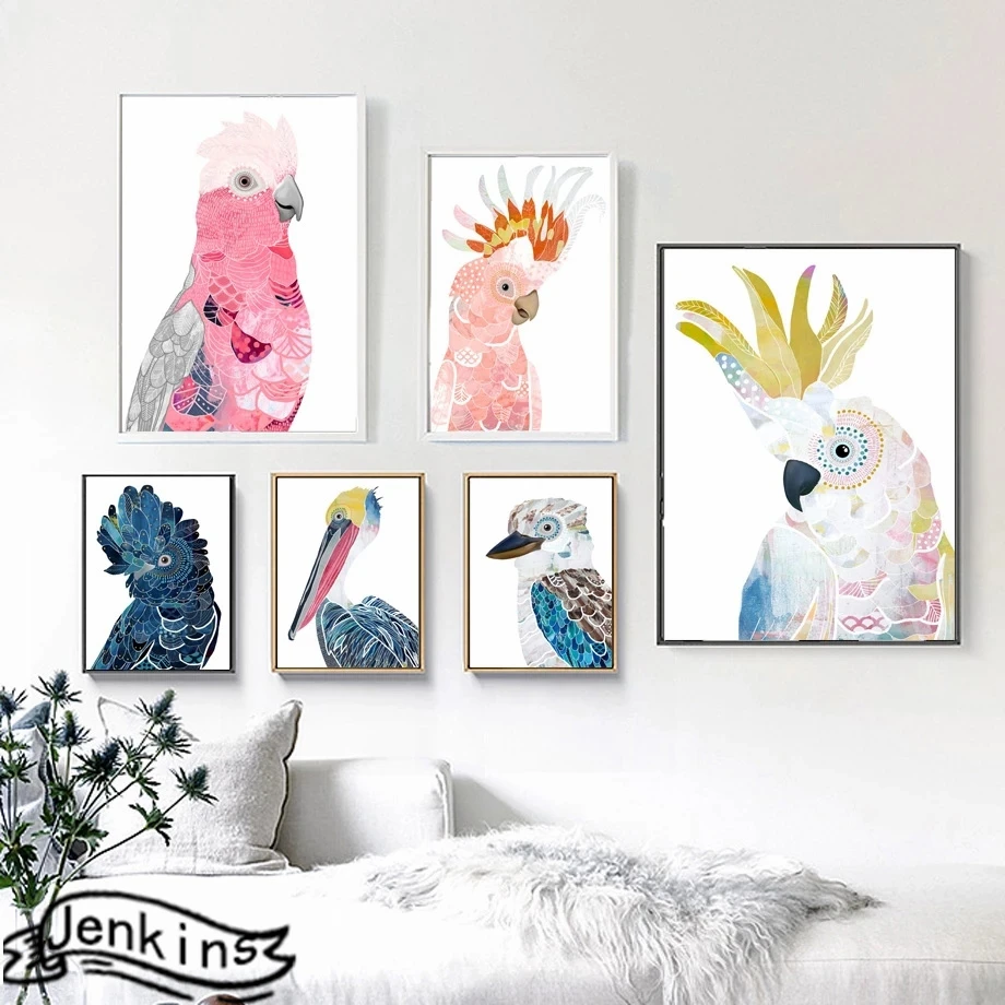 Постеры и принты в скандинавском стиле с разноцветными птицами, попугаями, перьями, настенная живопись на холсте, настенные картины для гостиной, домашний декор
