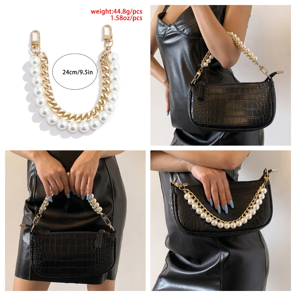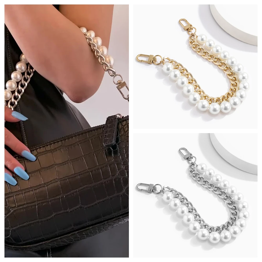 Ремешок с жемчугом 24 см для сумочки, модные аксессуары, Серебристыезолотистые металлические Сменные ручки для кошелька, Короткие ремни на плечо, цепи для сумок