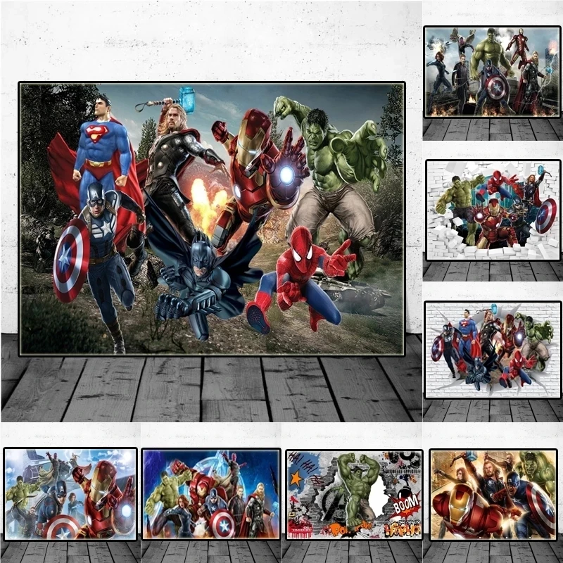 Marvel Мстители аниме постер супергерой Железный человек Человек-паук Халк фотопечать для гостиной офиса Декор квадраты