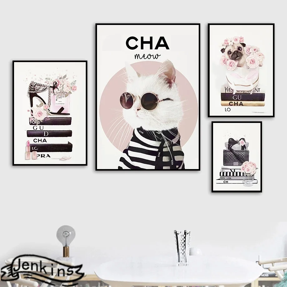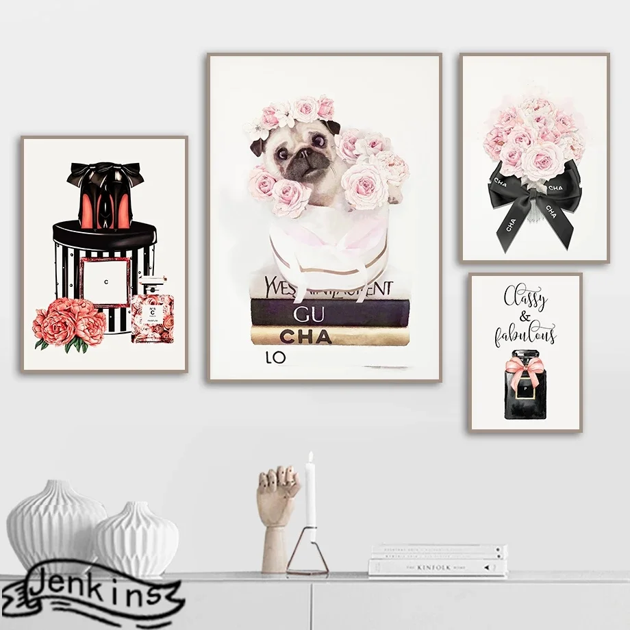 Модная книга парфюм для кошек светильник-розовый цветок сумка настенная Картина на холсте скандинавские постеры и принты для гостиной домашний декор
