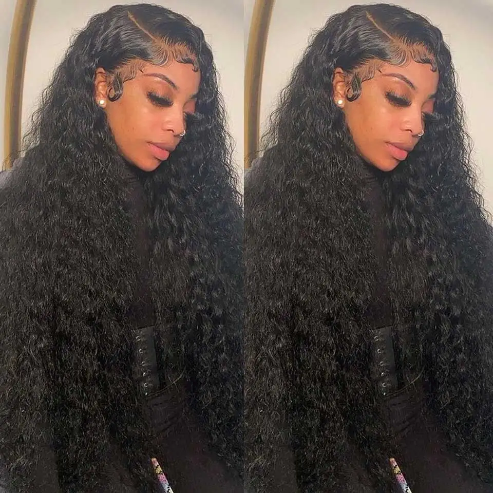 360 13x6 фронтальные человеческие волосы парики с глубокой волной б...
